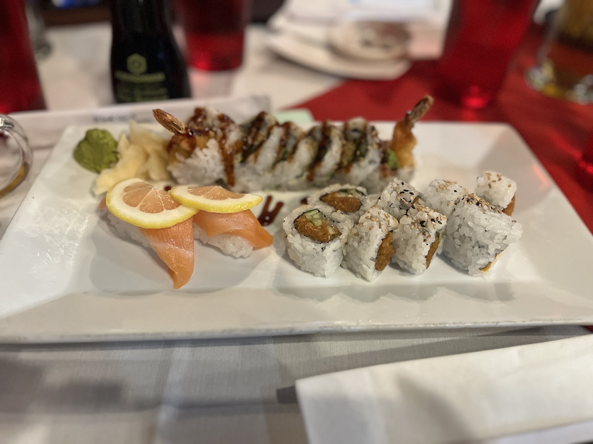 Read moreI was really looking forward to eating here and hoping it would be a great sushi spot I could count on for future dining options. It was disappointing, period. Between trying to get through to the restaurant, the service and the food quality, this was “okay” at best. The majority of their roll choices had shrimp tempura as the main meat. I do love shrimp tempura, but was looking for better variety than what they offered. Any other meat such as tuna or salmon in the rolls was extremely minimal. Way too much rice is used in all the rolls, and too much cream cheese was used in one of the rolls we ordered. I also got salmon nigiri and it was just ok, not the bright, fatty, melting fresh caught salmon. I would not be surprised if it was farm raised. The Fireman roll seemed promising, but the presentation was odd. It comes out on a flaming tray, similar to fajitas. It’s wrapped in foil so you have to carefully open it to find a disappointingly made roll. The fish on top was slimy. The service was bad, even though they weren’t busy. To order, they give you a marker to use on the laminated menus. Marker was dried out. I couldn’t find our server, and I guess he decided to go on break after he took our drink orders. 15 minutes later I saw him and he tried to avoid eye contact, which is really weird considering it was definitely time to order. He seemed completely lost. The cherry on top was when he informed our group that they already added the 20% gratuity, since we had a party of 6. He got lucky there, because his level of service was SUB PAR. If you call the restaurant, the line either doesn’t work or rings busy. Upon checking in for our reservation, there were only two other tables seated and they weren’t busy at all. Yet, the waitstaff seemed to scramble to put together a table for us. Maybe this place was good at one time in the past, but...