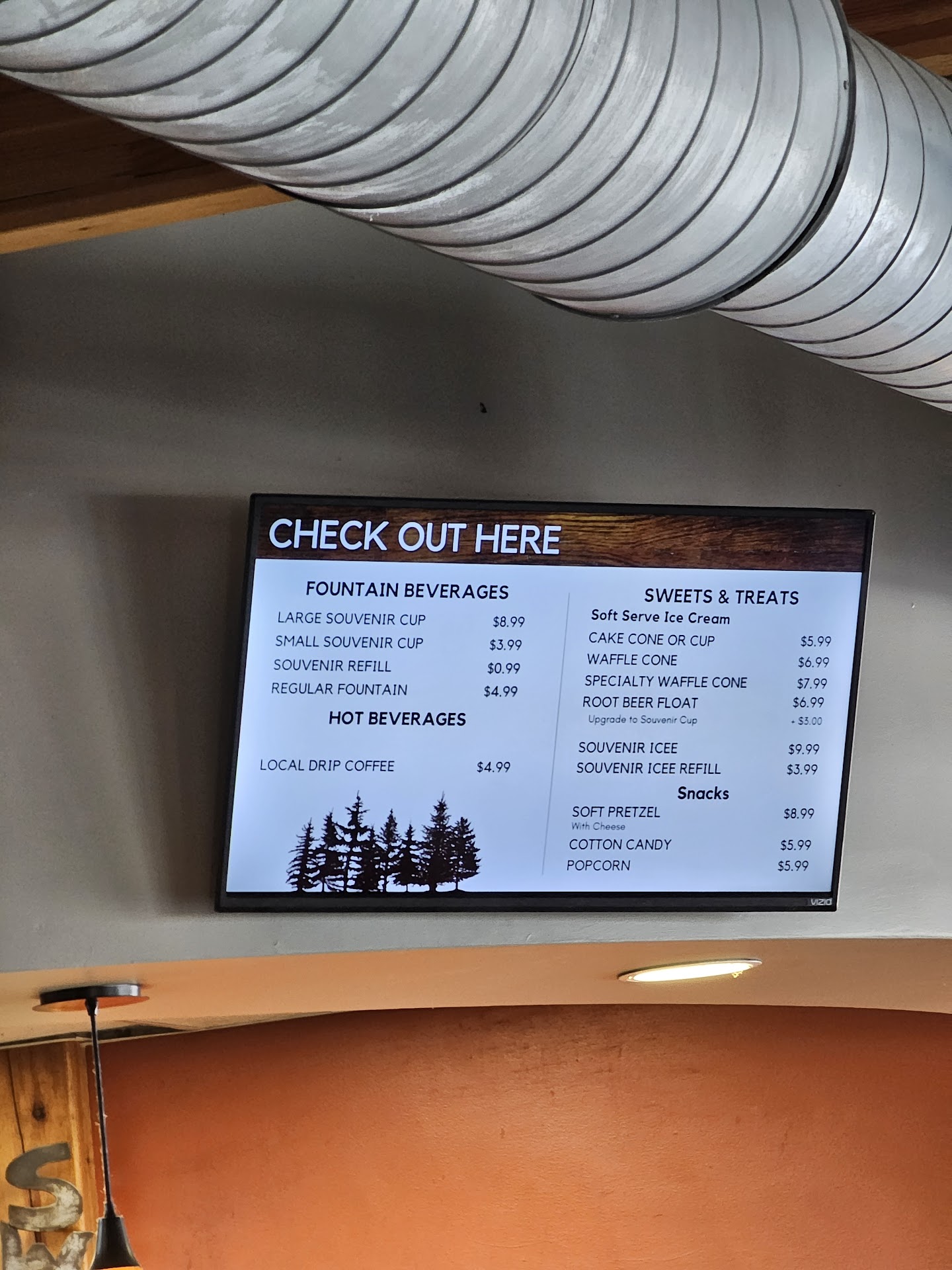 Read moreThe one star is for the food quality. I was shocked for a $40+ bill for 2 burgers and 2 drinks. I was expecting something higher quality for the price. I was VERY, VERY, VERY disappointed to realize the burger is nothing more than a pre-formed, frozen burger from Costco/Sam's Club that was so poor quality wise, I instantly regretted the purchase. I was already getting "hangry" and other restaurants like the BBQ had already closed. Burgers were not by choice, but rather lack of options. The people were nice enough, though tired, so the blunt questions/statements..... Lol!