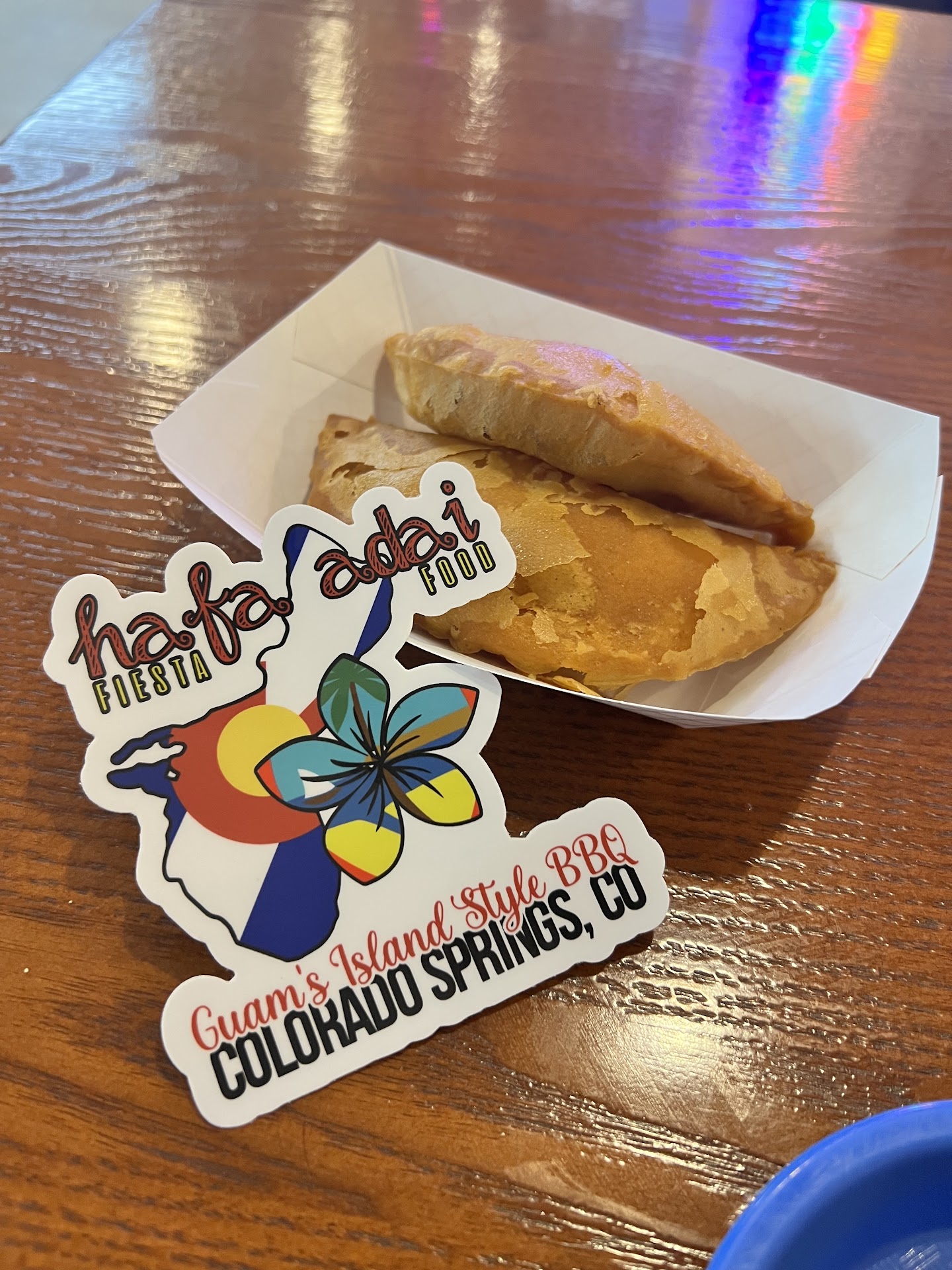 Read moreTake me home right now!! Hafa Adai Fiesta Food is THEEEEE BEST THING in Colorado Springs when it comes to being home sick. What better way to fill your belly then with Uncle Tony's great bbq or Pam's empanadas or come on with her guava or latiya cake, Auntie Lisa and Pink's friendly smiles, Auntie Jo plating you up...It's family nai.. Shoot you need to swing by for a 3 choice: Tocino pork that is a hit for my daughter, the bbq chicken and don't play with the short ribs, red rice, and lumpia.... But with lent in the air better make it right with the salmon and red rice. Lumpia is a hit and well everyone makes their own finna dinne but the Aganon family has the best when your feeling lazy. Let's not forget the ambiance of the restuarant screams; CHamoru pride, history written on the walls, CHamoru jams playing, and the feeling that your are home by the welcome you get.. Umbre adai hit me with the BUENASSSSS all day!!!! I need them in Florida since I moved, but shoot try out this gem and tell me you didn't leave feeling like violet from Charlie and the chocolate factory....Roll...
