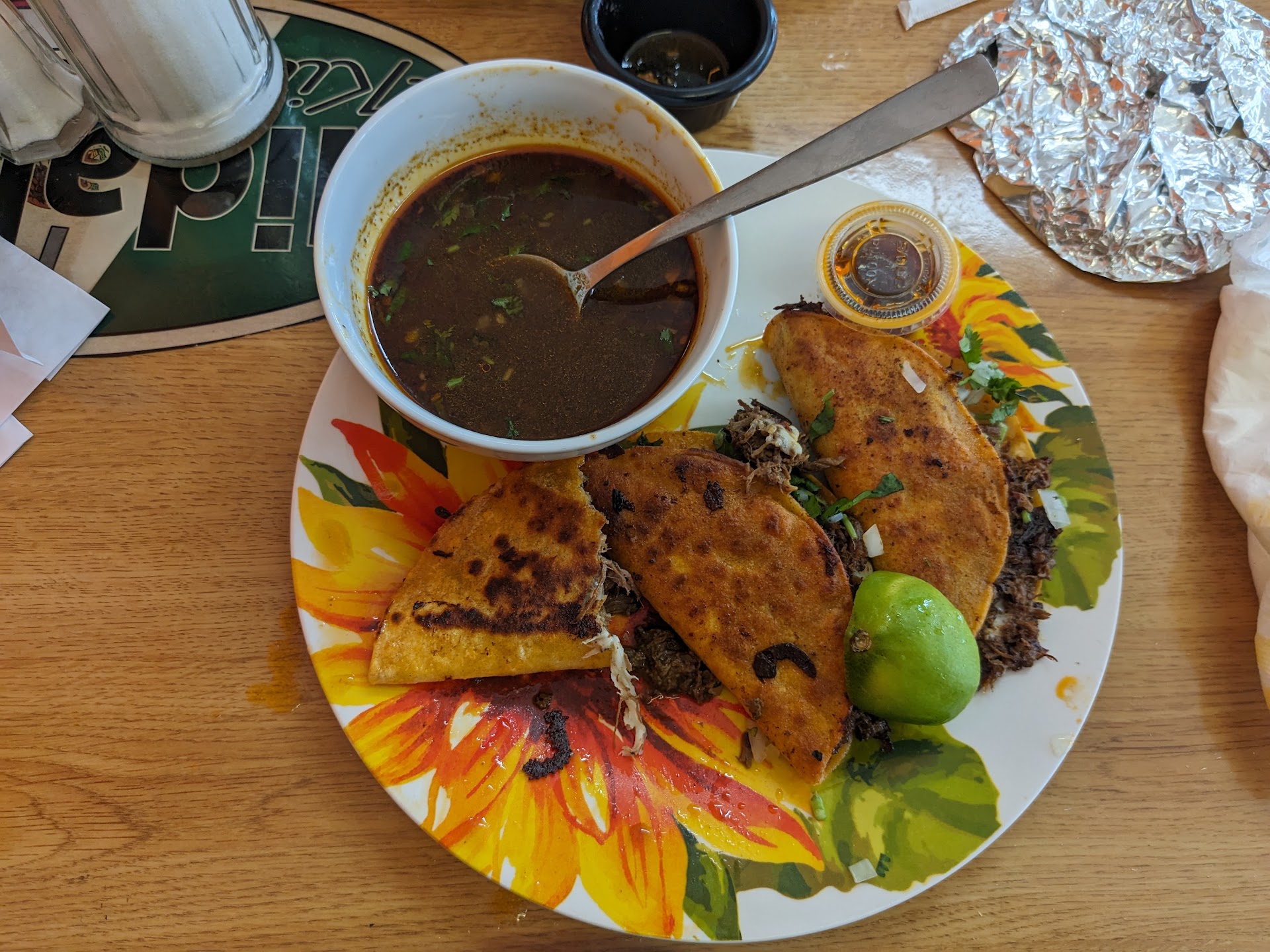 Read moreMy wife and I were tired, and I didn't want to cook, or drive far, and I'd seen this place around the corner from me, so I looked it up online, and had good reviews. Hidalgo's will become a regular for us. The family of the owners were having their own dinner there, that's how you know it's going to be "mama's cooking" There was a pork dish that I didn't recognize, and they let us sample a bit before ordering. I had the quesobirria tacos. I've been wanting to try these for a while as it seems it's all the rage now, and I see why. The consume' was so flavorful, and not a lot of fat. The taco's themselves were amazing, and the combination had me drinking the bowl after. My wife had the pork platter with beans, rice and handmade tortillas. She said it was some of the best she'd had. The owners and family were so nice and welcoming. I will for...