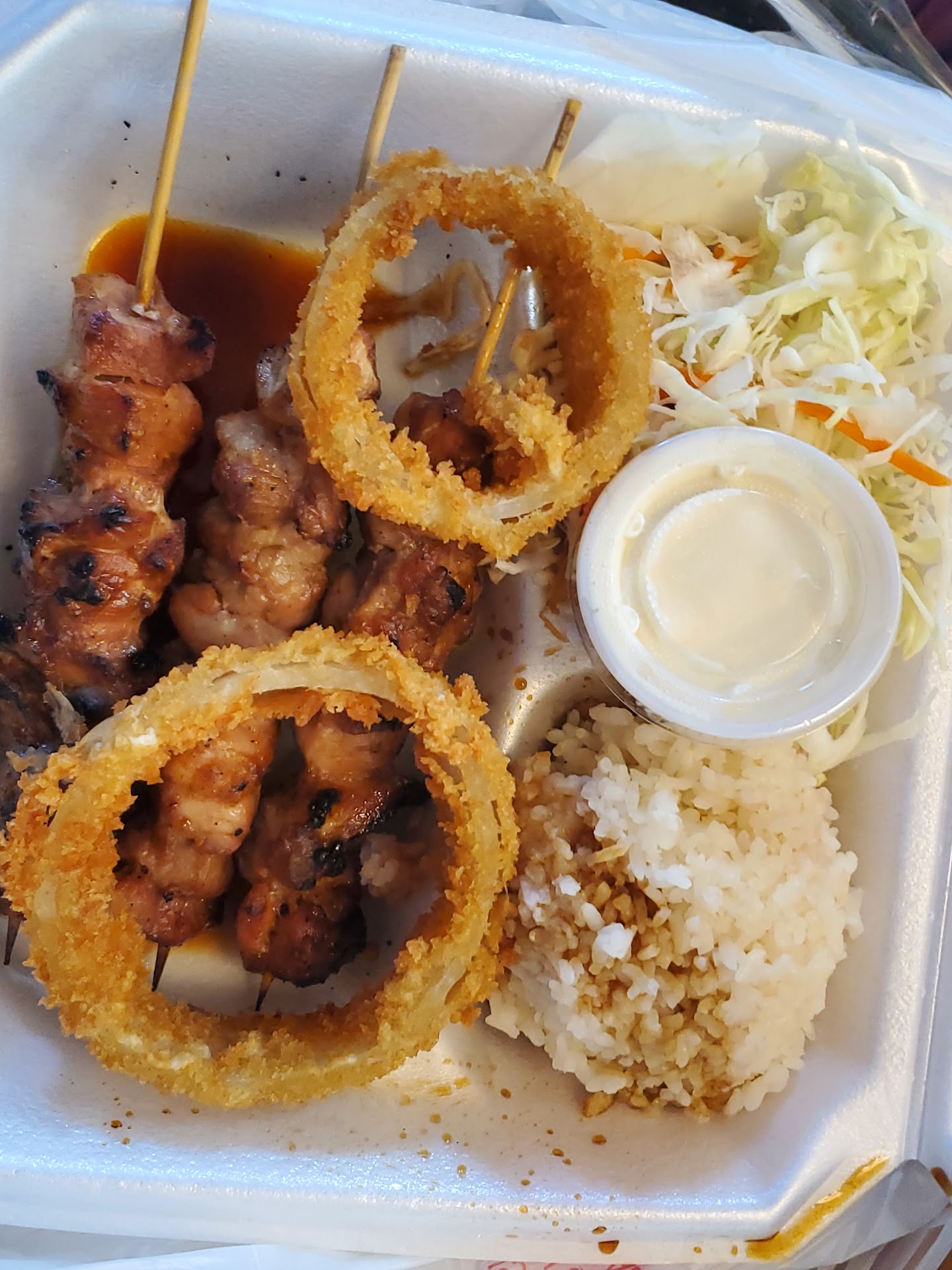 Read moreBefore I get into details, I did enjoy most of the food. I am rating this place based on my overall experience. The food would have at least gotten 4 stars on it's own. However, there were a few red flags during my visit and with my food that I wanted to make others aware of. I ordered 3 items and the lady that took my order used a calculator instead of a POS system. That didn't bother me at first until I tallied up my bill against how much the items were and I was over charged for my order by like 5 dollars. That's even if I factor in sales tax. Don't get me wrong, I got enough food to justify the price. It just bothered me that the receipt didn't include what items I purchased and simply had a total of the order.. Now to the food. It was really good for the most part. My only complaints were the onion rings were bland and my yakisoba tasted like it had pumpkin spice in it for some reason. I feel this could be a great place. it's just in desperate need of updated server protocols, a remodel, and a different...