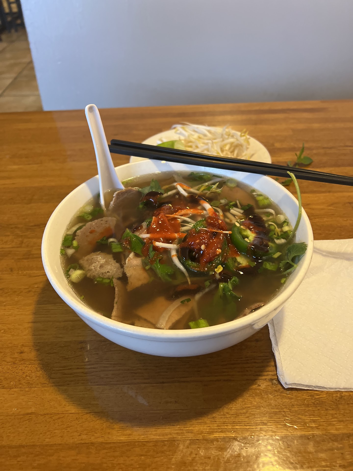 The entire restaurant reeked of acrid smoke and filthy grease traps. The menu looks like it's been chewed on by mice, and to be honest? It doesn't even look like pho. It may be pho noodles, but I personally almost cancelled the orders simply over health risks. I wouldn't feed my dog from that restaurant, much less myself.
