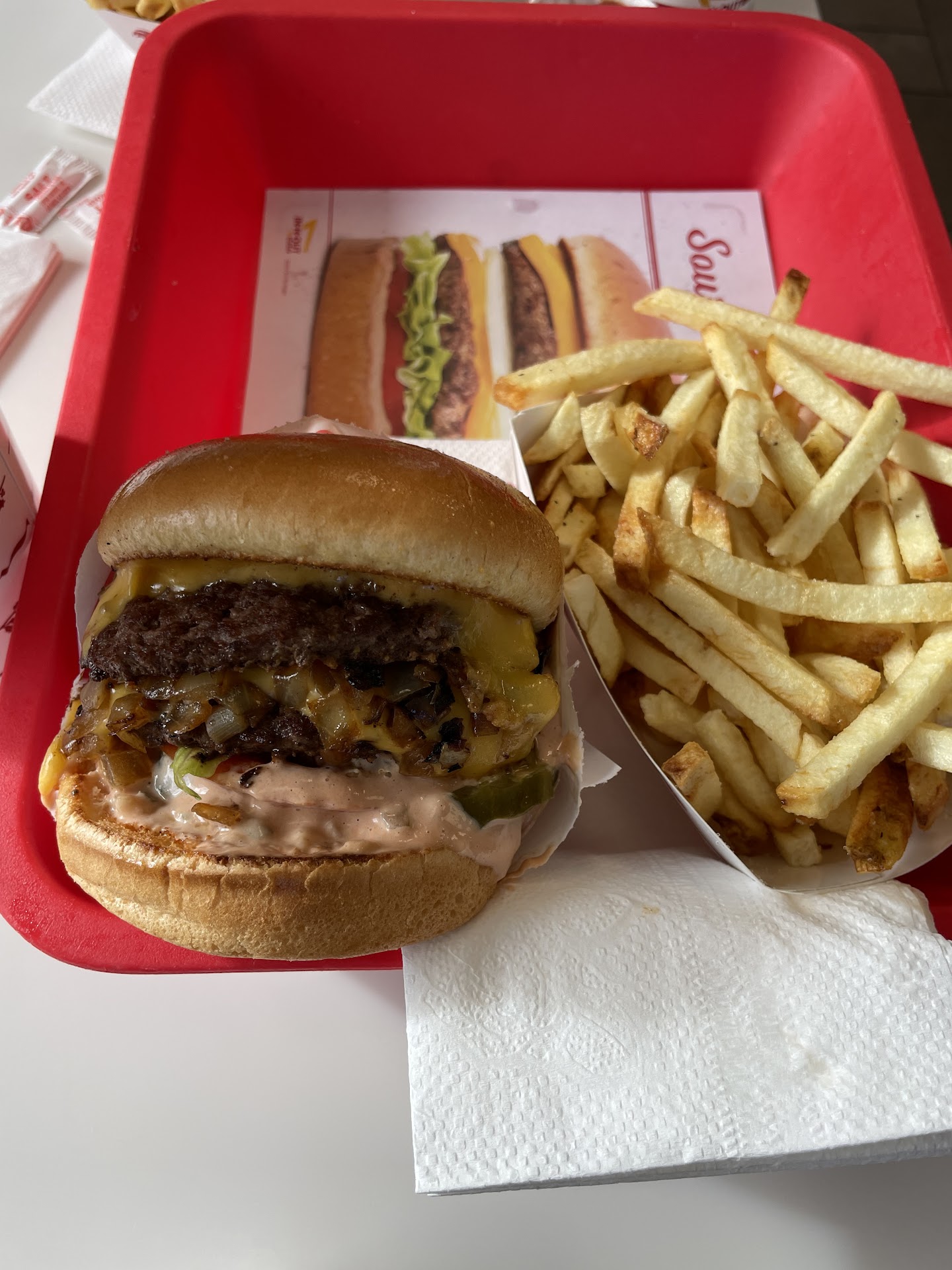 Read moreSo In-N-Out Burger is something that is grown on me over time. I don't like In-N-Out Burger as is. I like it customized. A double double animal style is where it's at. The fries are only good if well done my opinion. Don't like the fries any other way. I'll take them plain well done , but my favorite way to get them is well done animal style. The cheese, the spread, the grilled onions it's just a marriage of flavors on top of french fries that you didn't know you needed to have. Everything always should be animal style my opinion again. But I find myself having a hankering for In-N-Out Burger from time to time. This one is great because it's new to Colorado and I'm used to it from Arizona. I'm glad we have those flavors too. I guess I didn't realize how much I missed In-N-out Burger until I didn't have one again. Thank God we got one, two of them. Have only done drive-thru but have been inside and seen how clean the restaurant is. Not ready for dine in yet but drive through works and eating in the car. Sure people have seen me facing the drive-thru line having food moments in my car eating my food, I don't care. They still have super size drinks that are so big they don't fit in the cup holder in my car. I can't get over it. Two places have Dr pepper with the flavor like this. You know the first one but they don't have super size anymore....