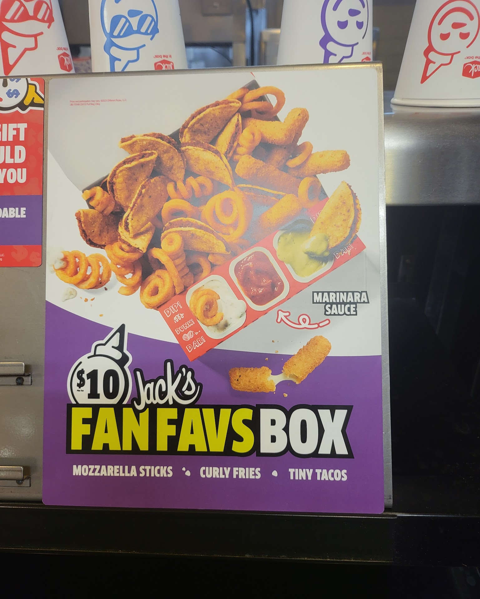 Ā Ā Ā Read moreThis all transpired on 5/25/25 eat in order number #447 jack in the Box store #8143 so at 2:43:36 pm me and my two kids walked into this establishment an ordered the following 2 classic popcorn chicken small box 1 spicy chicken with no lettuce or tomato 1 mini churro I paid 25.17.. soon as my order was taken they had multiple people returning to the store who had used the drive thru original cause of wrongs orders..š¤š§ so I got a little worried my food would either be wrong or have to be remade do to (lack of pride in work ) Iāve seen sports superstars flop on the court but never in fast food the stud girl pretended to get popped by grease in her eyeball when it wasnāt even cooking š¤£š¤£ the store was completely dead only me my sons and a couple eating.. so the shift leader with the boot on her foot didnāt want to work either.. the flop took a 15 minute break no surprise lol so then the shift leader started to make my order she never once looked at the order screen to see what the order consists of just put everything on the bun like the training video said to do so from a distance I see her making my sandwich wrong and I confronted her about the error she gave me attitude I her ass itās way too in the middle of the day for yāall to so many errors and itās not busy/slammed/wrapped/down the block/ fast food talk. Donāt waste your time or money going to this place youāll leave pissed off and not satisfied peep the...