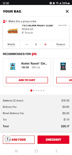 Read moreSoggy sandwich, but I don't bother leaving bad reviews when getting a bad JJ's sandwich. Happens too often. Used to not be a big deal, but they've gotten really proud of their low effort menu...so now they get a review. Their current business practices are a big problem. Advertising "freaky fast" delivery then farming out to Uber eats or door dash without any heads up to the customer is asinine. Took 40 minutes to get 1 sandwich delivered because they farmed it out to an ubereats driver that was all the way across town. Sandwich arrived soggy since it sat for 15-20 minutes after it was ready for pickup. They also throw in predatory fees that are not fixed. Adding a slim#5 to an order for a classic Italian changed the delivery fee from $3.99 (drivers don't get a piece of this either) to $5.99 to deliver. If you can't deliver without price gouging the customer just don't offer delivery. So $2 more to an already inflated delivery menu price (different prices than in-store/pickup). People aren't stupid. This location won't last bending over their clientele, such as they are currently. Greedy franchisee...or just bad at business. Either way I won't be doing my weekly orders until they fix these outrageous "penalties" for having the audacity to order "freaky fast" delivery. Photos of the "Two sandwich tax" and without. 2 sandwiches, with the higher delivery menu pricing already applied, went from $18 to $26 WITHOUT tip. Completely unacceptable. Over $30 for an original and a slim to be delivered 2 miles...