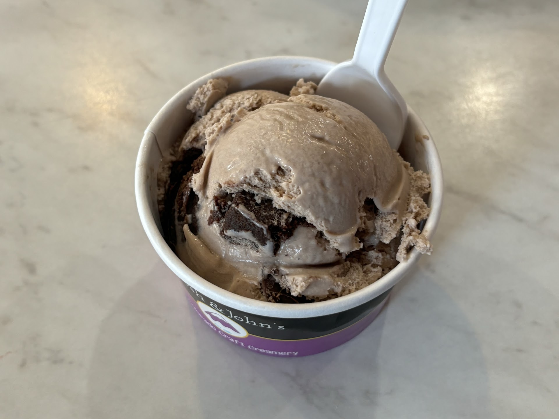 After trying out different flavors, my wife got a cup with a scoop of peanut butter and a scoop of chocolate. She enjoyed it to say the least.