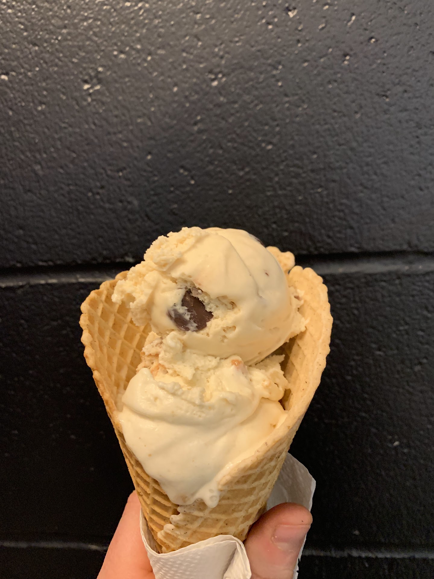 Let me say that we walked in while the employees were making the waffle cones and they tasted homemade. The waffle cone itself had a crispy exterior and even was slightly warm. As a result, this fresh waffle cone elevated my experience from the first bite.