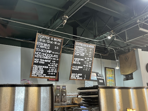 With a bustling DMV parking lot on one side and a gorgeous neighborhood on the other, this coffe shop seemed to be a shining beacon, beckoning me forth. From the outside, it seems rather unassuming; a tasteful decal plastered on the storefront. Stepping in, the first thing that I noticed was the smell. A wonderful mix of dark roast, delightful syrups, and perhaps a pleasant hint of hardwood washed over me as I entered the café.