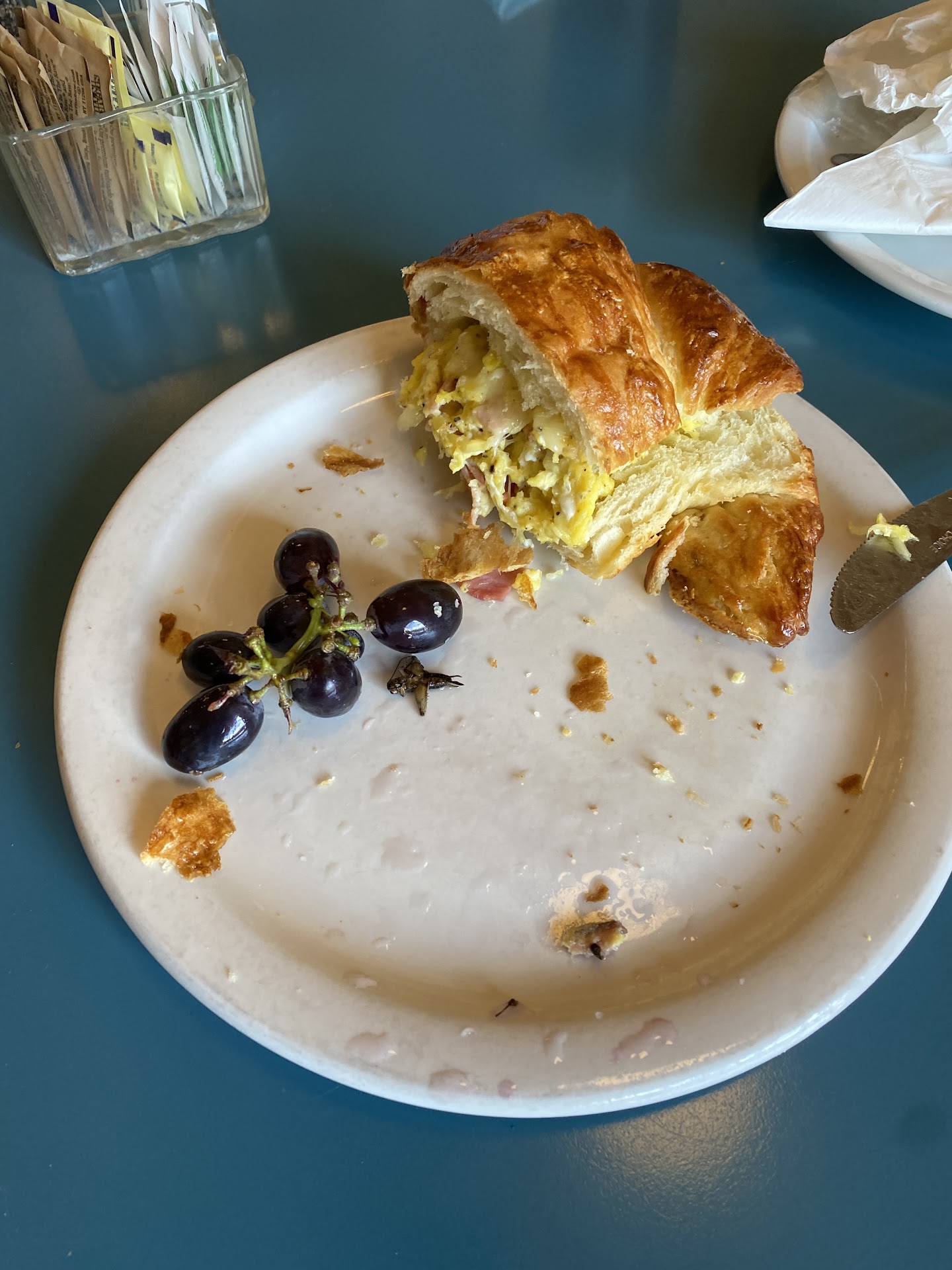Our sandwiches finally came out and I told him I was still waiting on my cheese croissant since she ran off to clean and do stuff that she could have done after serving me what I paid for. I usually tip really good but I was upset about the chai and attitude so I didnāt. I had to track her down in the back while she was cleaning and ask for my croissant! She huffed again like I was bothering her! Then goes cleans her hands and grabs my pastry.