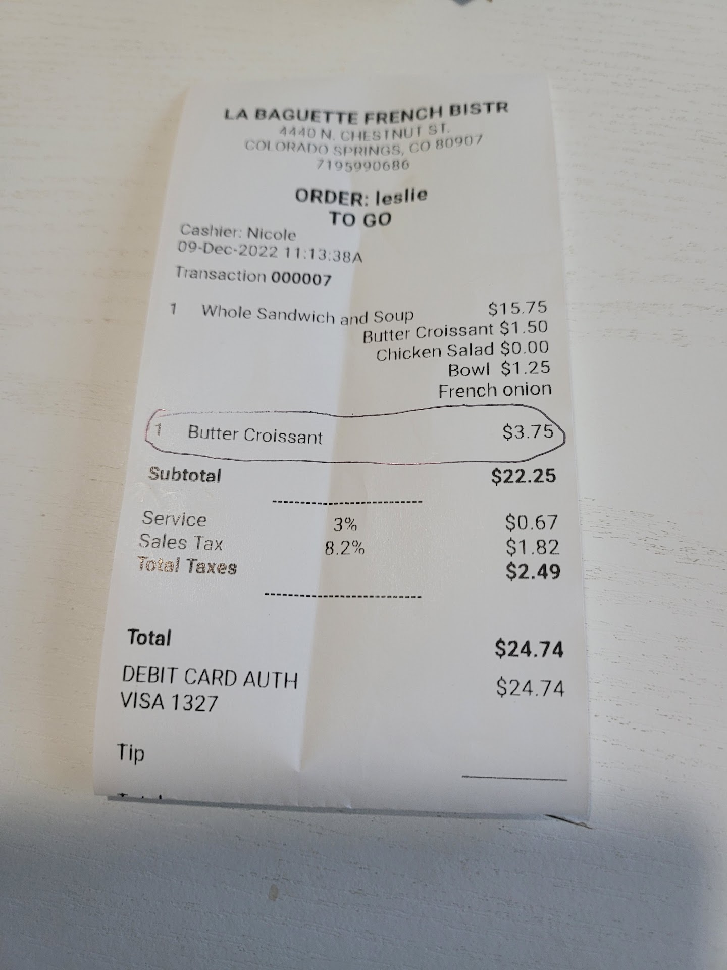 We will return, but only to check whether they're consistently poor. I'll update this review after we've done that. In the meantime, if you're looking for a similarly priced meal in the area, La Bella Vita is just east of La Baguette on Garden of the Gods Rd. They're guaranteed to be great. While they are an Italian restaurant rather than a French one like this, the experience will probably be better.