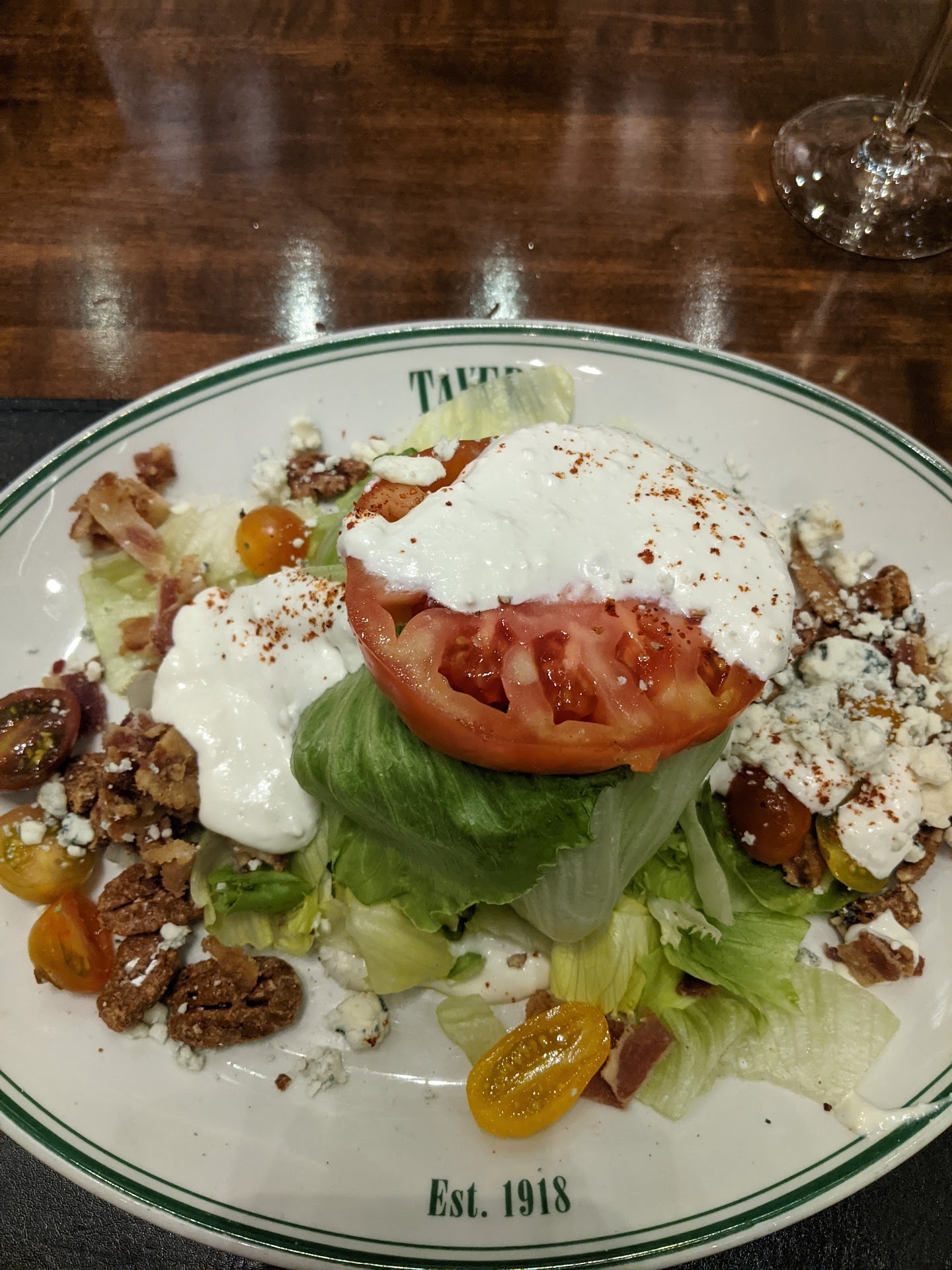 My wedge salad was great. No onions, as I requested. The plate size was adequate for the salad.
