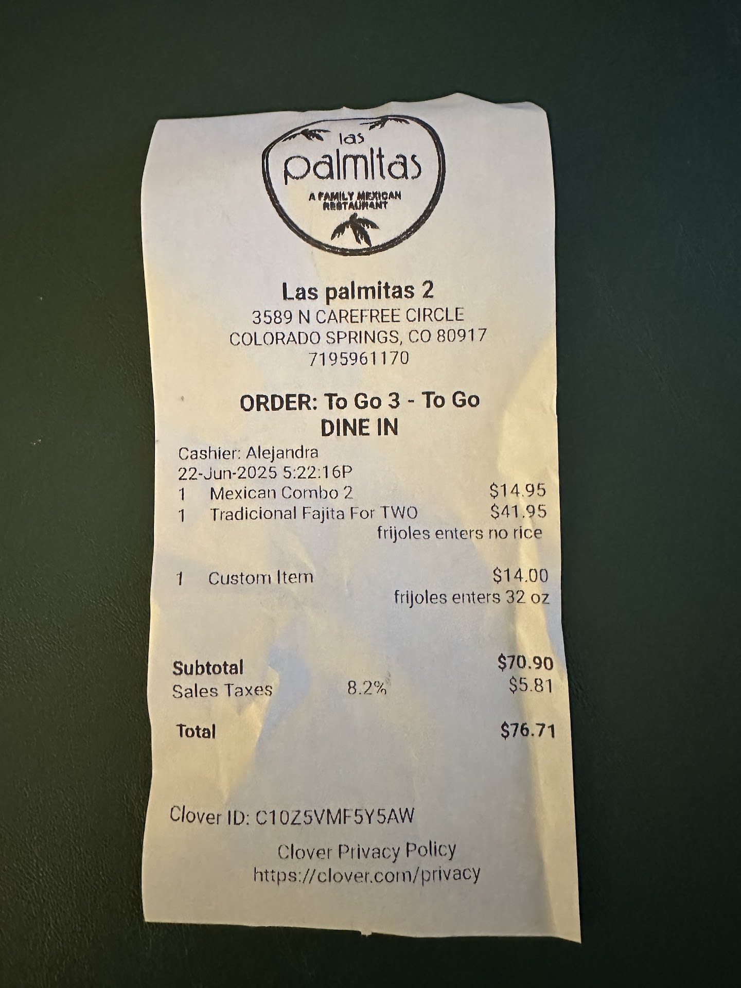 Called and made a to-go order tonight (6/22/2025) based off their private website with their menu and prices listed. My mother went and picked it up and paid when she got there. We ordered a two item combo and traditional fajitas for two. Their menu listed the prices as $11.95 and $26.95 respectively. When my mother got home with the food we realized they had not put the lid on one of the beans correctly and it had spilled out into the bag with the tortillas. They also did not include any of the toppings for the fajitas (lettuce, sour cream, cheese, guacamole, etc). So my mother called back and asked for a partial refund. They refused and asked that she bring all the food back. We ordered to-go because we didn’t want to cook or go out except to pick it up once. She told him that she wasn’t going to bring the food back that she didn’t want to drive back there. He told her there was nothing he could do then hung up on her. About 30 minutes later my mom was complaining that she spent too much on the food for what we got. I asked her what the total was and knew something was wrong. She never saw the menu, I did. That’s when I realized they overcharged us by a lot. They charged us $14.95 and $41.95. That’s an $18 difference. That may not be much to some but that’s another meal to us. My mom called the manager back and as soon as he recognized her name he began telling her how rude she was hanging up on him and kept saying he wasn’t going to do anything for her now since she was so rude to hang up on him. She had it on speakerphone so I took the phone and told him who I was and that I needed him to stop speaking so he could listen to me. I told him about the price difference and he said that they can’t change the menu every time process go up, that it is the customers responsibility to ask what the prices are. I told him that they maintain their own website and add a customer I have the right to rely on the prices they list. If the prices go up then they need to put a disclaimer out change the prices. He said he wouldn’t do anything for me.