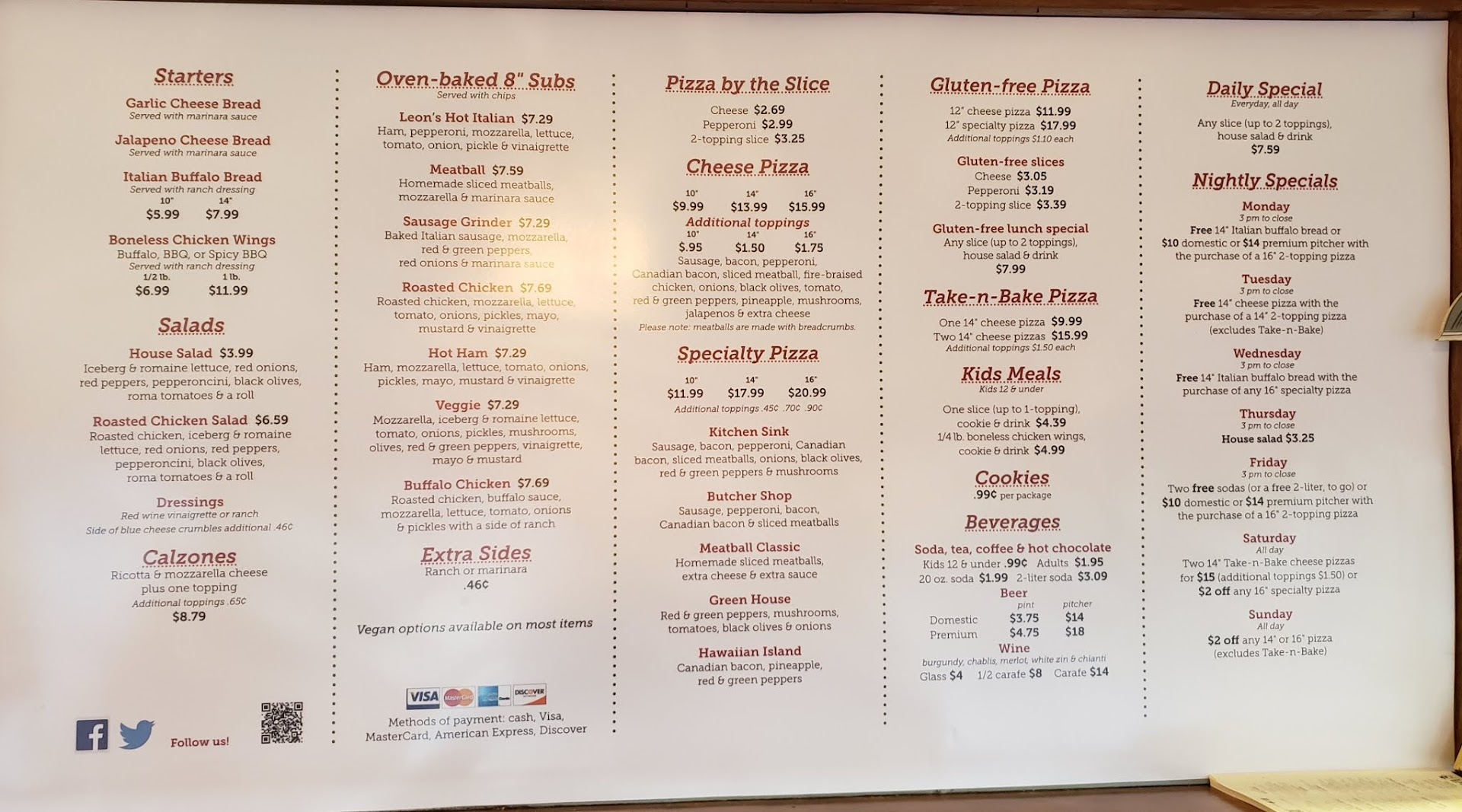 Read moreToday, Saturday, October 4th, 2025 at 5:25pm. walked in to place an order to go. what I ASKED FOR, was one large pepperoni and mushroom pizza, and an order of cheese bread with extra Marinara sauce for the bread sticks. It was PACKED, dinner rush. it was my fault for not double checking to ensure my order was correct. I reside on the extreme side of town, almost in Monument. the pizza was for my family, so they are very picky eaters. I got home, and its just a pepperoni and breadsticks pizza. I placed a call, spoke to 2 different individuals, and to my shock and surprise, they were extremely professional, kind, courteous, and apologetic. they told me to come on in and the next visit, the large pizza of my choice is on them for, "our mistake." I have to be painfully honest, I was expecting some kind of argument, disagreement, and other passing the blame. for me to even take the time to compose this review speaks VOLUMES!! as I have NEVER posted, or left any review of ANY KIND. I felt obligated to do so, as this pizza establishment is a town landmark. I used to go here after school in the 70's when East Junior High was a thing. so this has a historic value in my life. still excellent quality pizza, just like I remember it almost 50 years ago. THANK YOU! a very...