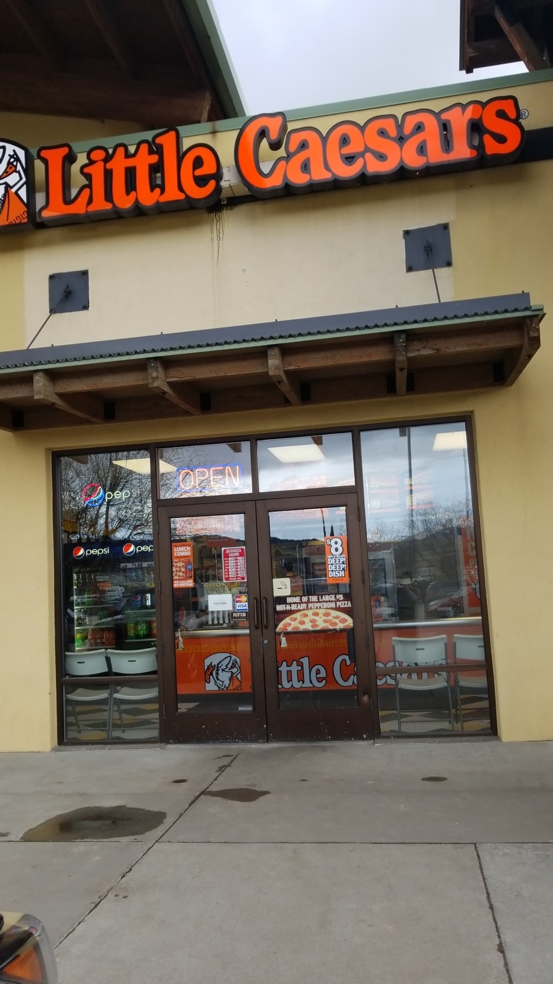 Read moreSo this location is a mixed bag. I eat this sparingly because of what it is, although the deep dish is not bad, this is where my latest experience begins. So the special is a half and half deep dish (supposed to be available 4-8pm everyday for the special). Go in and ask for the pizza, they said "none available", I said " Your sign says available 4-8pm everyday", they said "we're out, it will be ready in ten minutes". I said "I'll just take a deep dish if available", all was okay until the girly at the register made a lame comment and (I assume the manager) chided with her. At that point I mentioned about if advertised product a discount or something should be available for not having an advertised product. I would not even even wrote this until I took the first bite of the nasty cardboard they claimed to be pizza. My pizza had been in that stupid warmer for so long I had to not bite through but tear it like a freaking shark tearing a sea lion apart. I'm pretty disgusted, and the irony is I probably will eat it again. Perhaps check on the pizza, upgrade customer service, get some personality and I could see success, if this continues, there may be an open spot in that center. Dominos $5.00 pizzas are a...