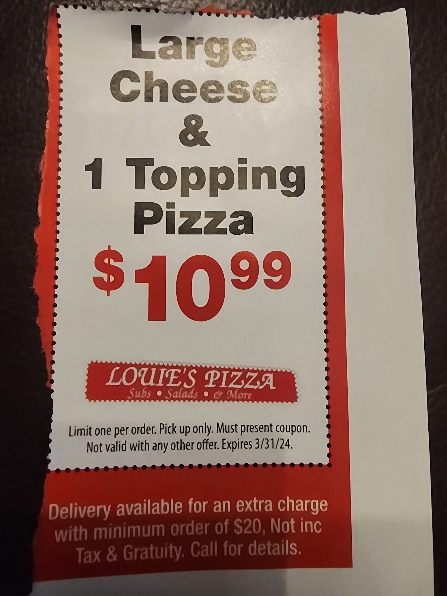 Read moreTime before last that I ordered delivery from here it took over 2 and a half hours to get our food. I called in to complain to the manager and he took down my info told me the next time I ordered two pizzas it would be free. That was fine by me everything was good again. Next time I ordered pizza expecting it to be free, they had no idea who I was and knew nothing about me having free pizza. Tonight, I ordered a couple pizzas for delivery and the guy told me an hour for delivery time. That's pretty ridiculous considering I live 8 minutes away from the store, but whatever. An hour and twenty minutes later I called in to ask for an update. They said the delivery driver was out and it should be to me momentarily. I said thanks and hung up. twenty minutes after that I called in again only to find out they had cancelled my order. Now misunderstandings happen, but there is no way to misconstrue "thanks for the update" as cancel my order and make sure not to charge my card. This place is ridiculous. Repeatedly failing to do something as simple as drive a pizza to a location 8 minutes away within a reasonable amount of time. When I spoke to the manager he offered me half off and to have it out to me in 45 minutes. First of all, half off to have my order 3 hours after ordering it is simply not good enough. Second of all, this is the third time in a row Louie's has failed at something simple. I grew up here in the Springs, and used to go to this location for lunch during High School in the late 90's and early 2000's. I have a lot of good memories related to Louie's, but their consistent poor service (much more than I wrote here, this is just the last few things that happened) has led me to be...