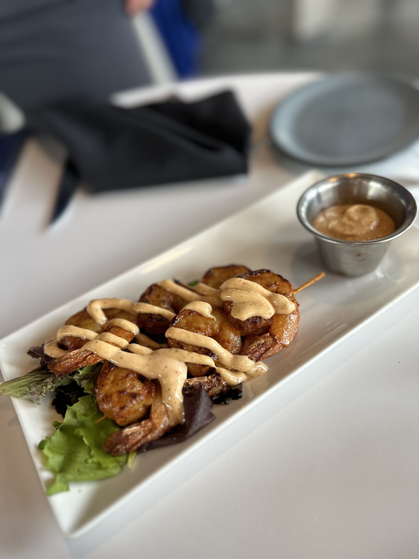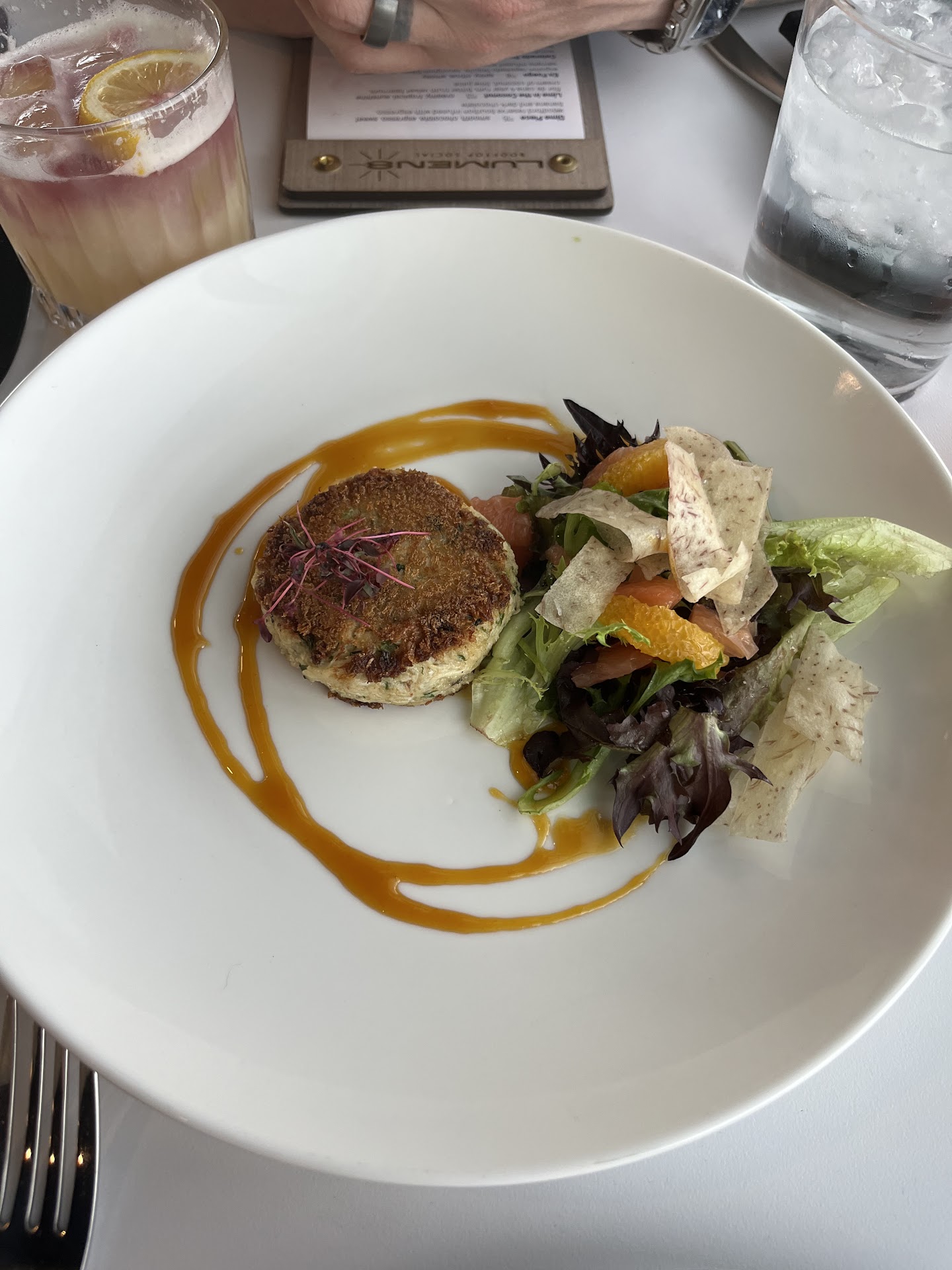 We had the crab cakes as appetizer, and it was really good. The disappointment here was there’s only ONE on the plate, and equaled about 1 ounce of food for two people. The serving size of this as an appetizer makes zero sense.