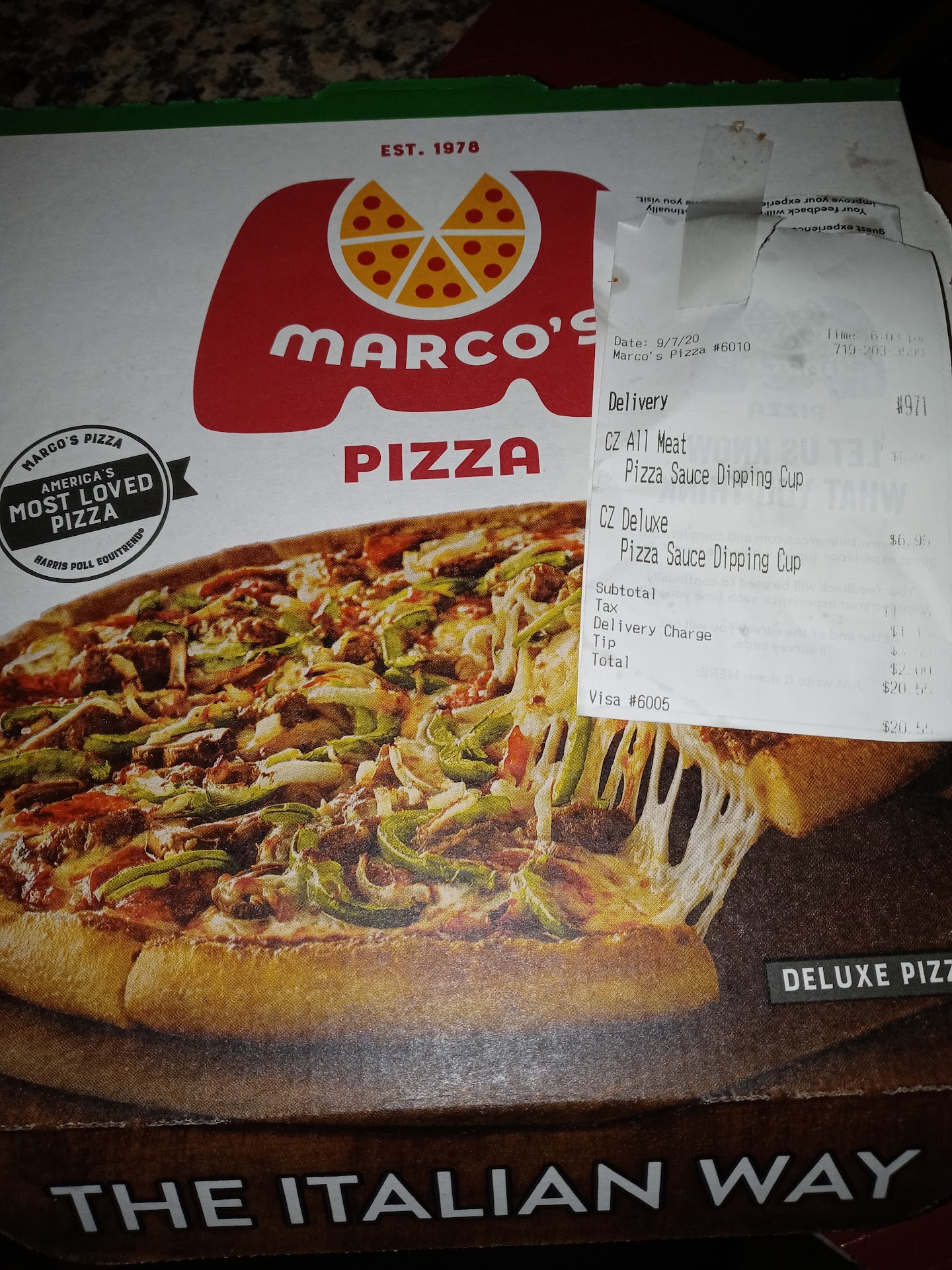 Read moreSadly I think we’ve made our last order. Marcos has been a favorite for several years but things have changed. We are very understanding of the effects of covid but the experiences we’ve had on our last few orders is about over all quality. Wings have always been a go to here. Our last order was over cooked and the wings were a fraction of the size as normal. We’ve always love the big meaty wings and we always have left overs. Our last order was the same amount we always get and the wings were tiny. I had hungry people at the end. Today we ordered a small cheese pizza that came over cooked which is a bummer cause we’ve always loved soft their crust. We ordered a steak sub and again very different than previous orders. There was almost no filling and the side we ordered was missing. Last, cinnamon bread. We asked for triple butter cause we like them gooey. Basically no butter but looked like triple cinnamon that was all dry as a result. None of this is what we’ve experience in 7 years of ordering the exact same way. We’ve done a few orders over the last few months to see if things were one off moments but these are repeats. Sadly we will be on the hunt for...