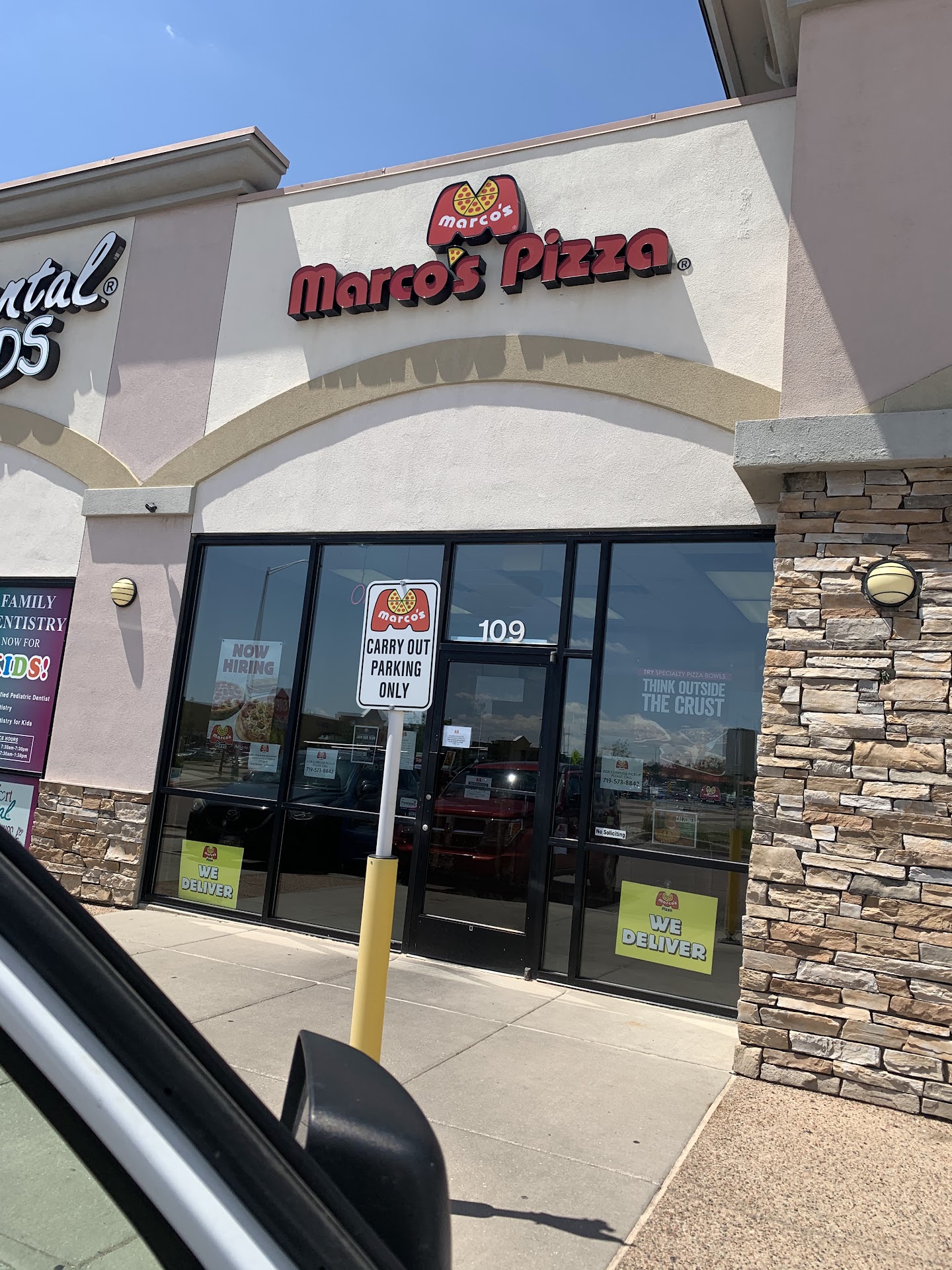 So went to Marcos pizza last night 7/31/20, I called in originally to ask about delivery which they said would be two hours wait, I also asked about my certificate I won on KBPI radio 107.9. Great radio station figured great pizza. Well I wanted to try them out my winnings was a free large pizza. I ordered wings (10) cheese bread and a chicken Caesar salad. Total was like $43 and some change but they didn’t know if they Would honor my certificate. So I went down to do carry out as the certificate says to do. I get there and GM Andrea told me no on the certificate and she would give me a deal totaling $39 this is carry out without their delivery fee with a deal. While I was there I witnessed Andrea and TWO other employees not wearing mask. I ask when I could speak to owner was told today at 11. After entering today thinking no biggie they would honor my certificate I won on radio. The owner Christina was indeed there wearing no mask. As I indicate pictures are of owner not wearing mask. I figured the no mask option came from the top if GM wasn’t wearing her mask. I was told to exit the building and put my mask on before I could enter. Anyhow the wings seemed deformed and customer service is horrible from the top down. If u would like to just simply refund my order I’ll be happy to delete this, and I’ll just in the future order Marcos from downtown...