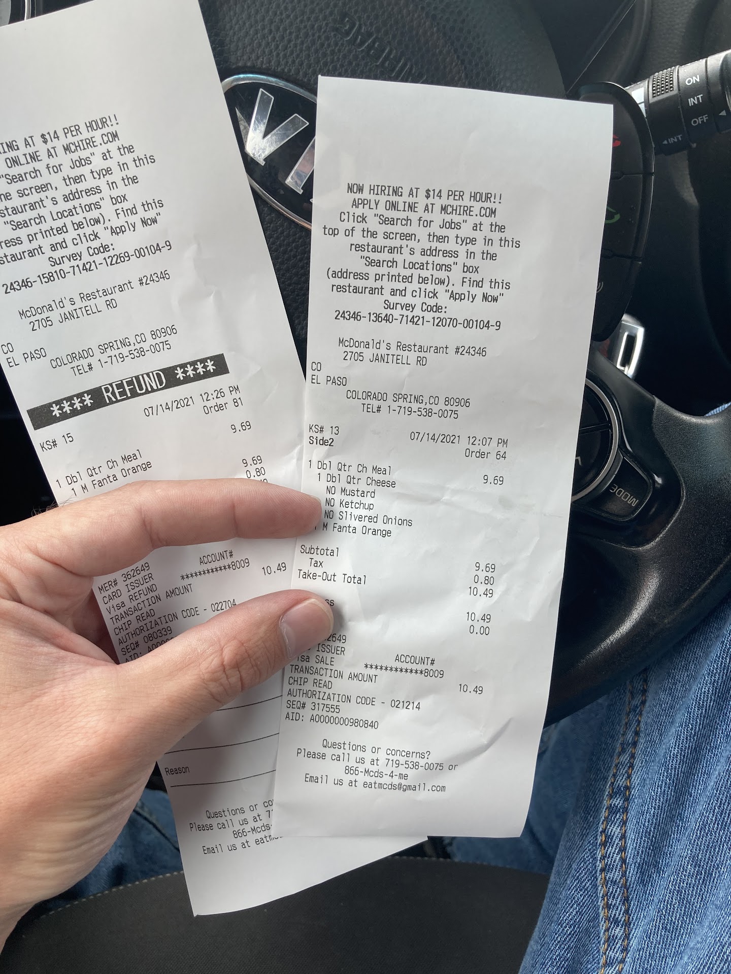 Read moreI went there today I ordered a McDouble $5 meal with no salt on my burger in a medium fry and two drinks. The fries were cold. The burger was wrong. So I went back through to get the burger remade I was told to go to the third window and wait sat there for over 10 minutes waiting just watching everybody else that was in the line behind me get their food which was like 15 people. Finally my 6-year-old needed to use the restroom of course always at the worst time so we just parked and went inside. When I asked the person at the counter about my sandwich it had been sitting there waiting to get bagged probably for the whole 15 minutes if not longer. So I asked for the manager that I spoke to at the window and asked for a refund. While I was sitting there waiting for the refund I was watching the two making the sandwiches in the back. They both continue to play on their phones while having gloves on did not change them whatsoever. And then continue to make more food. After the manager gave me my refund I explained to him what I saw he didn't even say anything he just said basically okay and acted like he went to go talk to him and I left.on my way out I'm not going to lie I informed every single person you may not want to eat here cuz they just played on their phone and didn't change their gloves which was about three people. Because if the tables were turned I'd want somebody to warm me too. The environment was really sketchy to be honest with you and nobody seemed happy nobody had good customer service and while I was waiting for my refund the guy in the back making the sandwiches kept giving me the dirty looks dirty looks dirty looks every time I look back there he was giving me dirty looks and it looked like they were sitting there talking s* about me which I could be completely wrong but I don't think I am so even though I got my sandwich.. and a refund I didn't even eat it because I felt like they had already done something to it and that's why he kept looking at me the way that he did that is just assuming so I could be wrong. But I will never go to this...