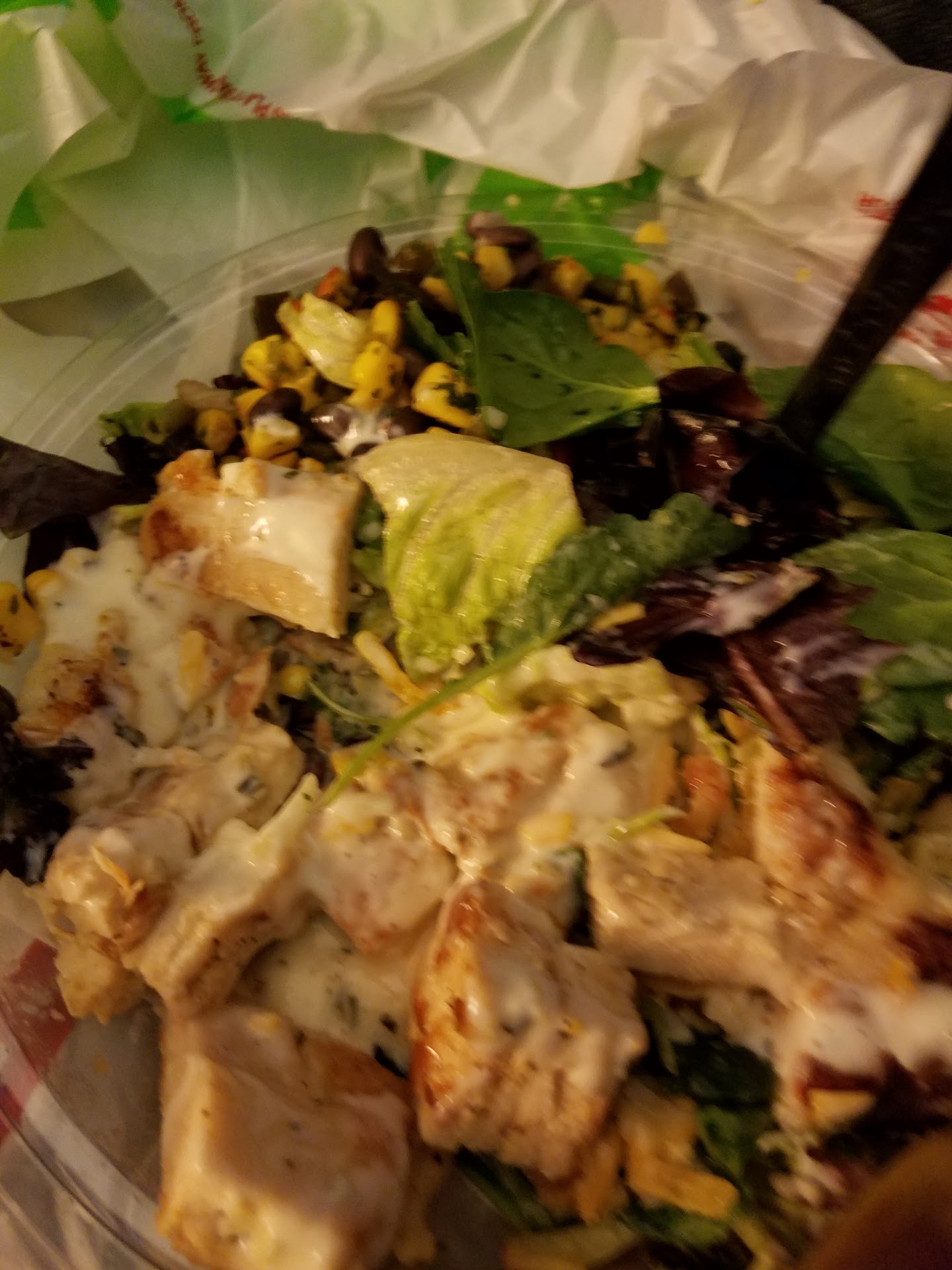 Ā Ā Ā Read moreI go here and pay extra for extra toppings and I don't receive than I tell manager next time there and they credit me So I get exact thing and explain please make sure I get my extra but get home and there's no extra. I call in to the management that says I will replace so I say ok and still took pictures for proof. Now I go to get replacement and management put in book do not replace again. Very unprofessional and/or long lines waiting cause they behind and than they ask u to park to the side and lol bring out wrong food. Besides that place would be great and would be the best if management was all professional. 03/28/2017 new visit since last bad experience and got same thing. Which I always ask for extra cheese, grilled chicken, and corn chips which comes already in salad. Well, this time no chips at all. So, husband calls explaining that. Person on phone rude. Ask for manager and she was manager that was treating him like he was lying and getting smart. I truly think all night staff needs removed. Very unprofessional. She said her name was Cecilia cause we ask for name and corporates number. Enough is enough...we spend money and sometimes extra to recieve good food the way ee asked not to be disrespected and burnt out our money cause we cannot eat food, food wrong or/and made wrong... Now, night time manager Cecilia cancels all salads and refunds money at 2nd window saying you went to corporate and that wasn't true. my daughter there ordering and had nothing to do with last problem. So, now being denied services for wanting what we paid for and done right. 04/24/17 update: last week I was contacted and was respectfully apologized to from the top with promise that problems...
