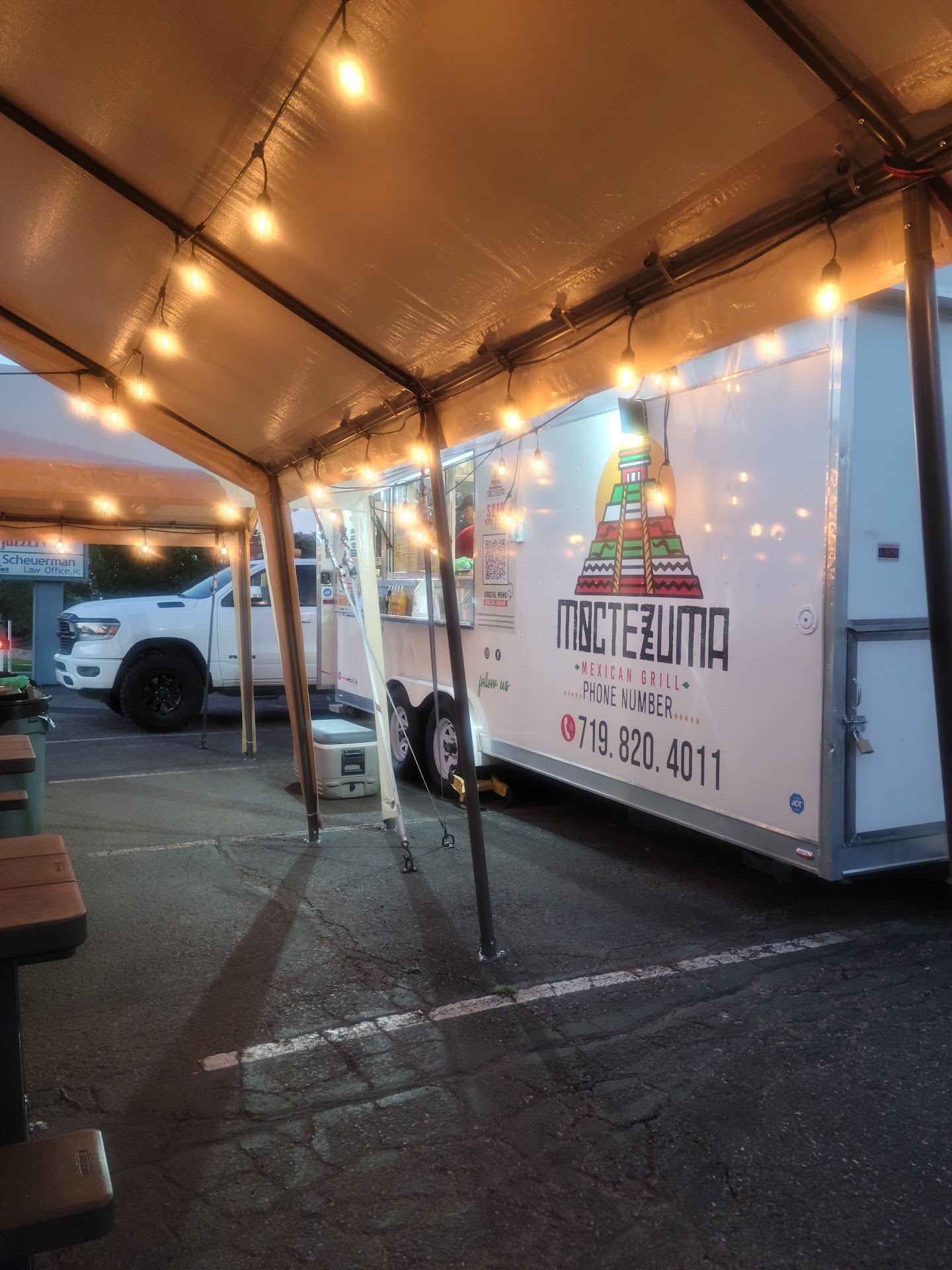 After a long Saturday night, my wife and I wanted to try a local Mexican food truck after driving past it multiple times. We stopped around 8:00 PM for dinner at Moctezuma Mexican Grill.