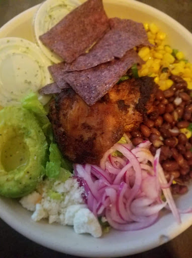 So you can only eat Pizza, Mexican, and Asian food so often so you got to change it up every now and again. I'm glad we threw this in the mix. It's healthy fast casual food. It reminds me a little bit of that burrito place and then that other burrito place that you can do bowls and salads at. But they do more than just bowls and salads. I was initially looking at the pulled park bahn mi and ended up getting the Baja blackened chicken. First of all I'm grateful they use thighs. Thighs have so much more flavor than breast. This had the perfect seasoning and that bark of BBQ on the outside. It was a visual experience to say the least. They say you eat with your eyes and I definitely was drooling all over this. The beans are seasoned well the corn is seasoned well it's not just out of a can and plopped into your plate. The pickled onions have had a wonderful tangy flavor. I sliced up the thighs and mixed it all together. Covered it in the delicious creamy jalapeno lime dressing. If there's jalapeno in it it's hidden, I didn't taste any spice but I'm okay with that the flavor is definitely there. This definitely felt like the biggest salad ever. I seriously ate this for about 30 minutes cuz I couldn't stop picking at it ended up cleaning my whole bowl. I'm a kind of creature of habit so I don't know if I'm going to venture out to anything else on the menu cuz I already love this, but if everything else is good like this I...