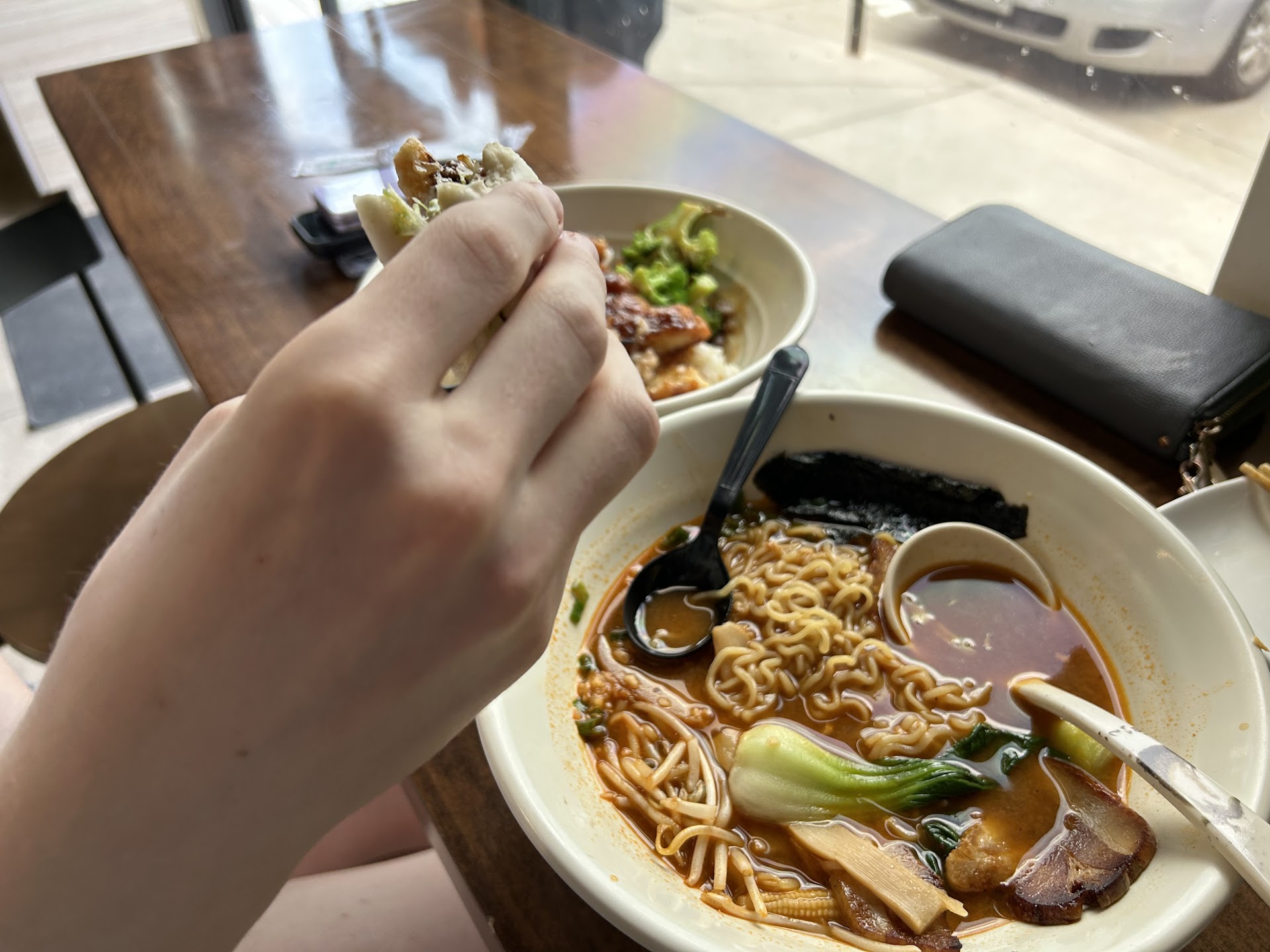 The food was really good price and was worth every freaking penny! We got the Katsu and it was cooked PERFECTLY! Crispy on the outside and juicy tender meat on the inside. I got a bowl of spicy ramen myself. While it wasnt actually that spicy it was indeed that good! Our appetizer was the pork steam buns and OMG I HAVE BEEN CRAVING THEM SINCE!