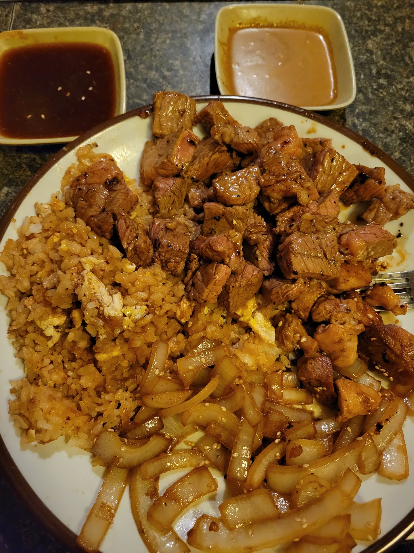 The food was excellent. Seriously the best fried rice and soup we’ve had. The shrimp was cooked perfectly and the steak was good. I really liked their hot mustard sauce that was the flavor without the crazy heat. The salad was also delicious. The ginger dressing was the typical runny version I’m used to seeing in Japanese restaurants (it is not thick like Americans make) but had a fantastic flavor.