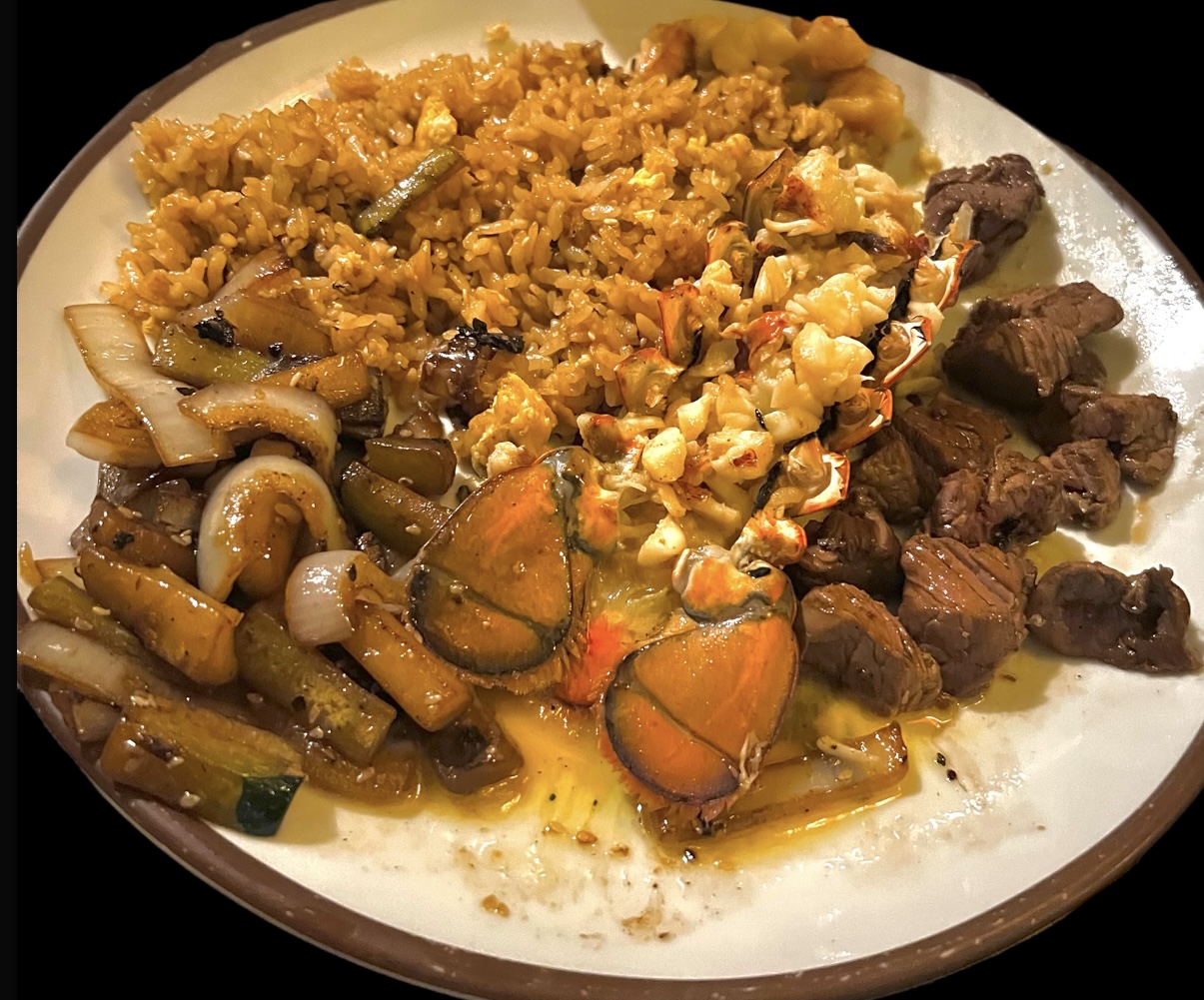 The Food - The food was cooked so slowly that most of it was cold before we even were able to put it in front of us as a meal. The prices are absolutely insane for the small amount of portions that you receive. The chef cooks a big amount and then divides it up between the customers so if you're around the last to get served, you get very little. Everything is absolutely drenched in soy sauce including the steak, it was so salty it was nearly inedible. It looks like they precut the lobster so that you don't receive the entire thing from the get. The weights of the steak aren't listed and are cut extremely thin and for the $50 cost for the lobster and steak you get practically nothing but soy sauce drenched meat and cold lobster. The vegetable options.. oh there are none, you get zucchini and onion only with your meal.