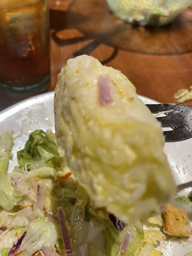 Read moreI have NEVER had a more disrespectful and inattentive server in my life. First, we sit down and are greeted by a server who does not introduce herself. She immediately asks "What do you want to drink?" with zero hospitality. She was not busy. She had 2 tables that had already been greeted and had drinks. We order drinks and an appetizer. When she came to drop off the drinks, I said "Thank you so much!" thinking maybe we had got off to a bad start. She looked at me, scoffed and LAUGHED. She did not say thank and immediately asked if we were ready to order. We ordered our food and continued to wait for our appetizer. Maybe 7 minutes later she comes back to the table with the appetizer, salad and breadsticks. After walking away someone else is immediately behind her with our entrees. She did not space out our food at all, so we got everything at the same time. It's great to get fast service, but every server should know that appetizers, salads and entrees do not come to the table at the same time. As we were eating, she gets sat with another table right next to us and greets them with the same rude attitude she greeted us with. Also, she never came back to check on the food that we got all at the same time. I had to flag her down to even get a box. Luckily we were able to pay our bill with the computer on the table, or I don't think we ever would have got out of there.