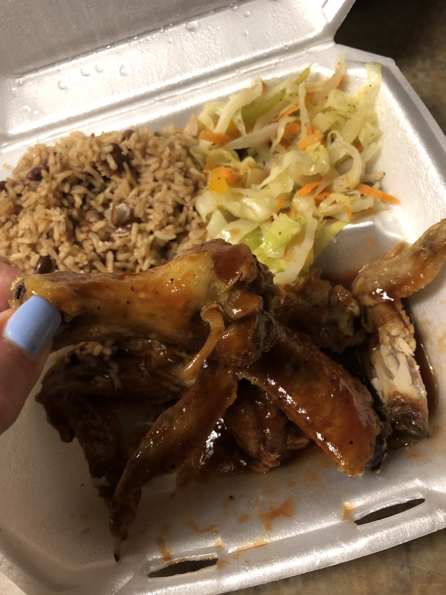Don't even READ my review! Just love yourself enough to eat this food!!! You work hard. You deserve it! I had four meals from here this week alone. I buy two meals at a time - the second meal tastes even better the next day, believe it or not. I most enjoy & repeat buy: the oxtail meal with plantains & steamed veggies annnd the jerk chicken with steamed veggies and the rice & peas. Tonight I also had rice & beans and some amazing watermelon juice. The oxtail is tender and flavorful (& I chuck the bones in my freezer to make bone broth later). The seasoning is subtle and mouthwatering delicious. Those steamed veggies get me EVERY time! Steamed to a perfect texture that I just cannot replicate on my own. Subtle flavor that will make you second guess if you are truly full and have had enough.. or if you just need a breather before you dive in for more.. When I take my leftover steamed veggies to work, I have to beat off my coworkers! They annoy me with their, ''Oh my God! WHAT are you eating?! It smells AMAZING!!'' (Go away. It's mine. Get your own! LOL). The plantains are slightly saucy (not dripping, not dry - just right!!). They melt in your mouth with another texture you'll be missing fondly when you realize you ate them all. These I will snack on, cold, the next day. It's a guilty, guilty pleasure. My other favorite entree is the jerk chicken. I imagine I have a secret soulmate that cooks this chicken just to show me some Jamaican island love.. The flavor explodes in a sea of exquisite spices that literally make your tastebuds beg for more. Moist chicken... Mmmm.. The rice is yet another wonder. Not the slightest bit mushy or sticky. A firm enough texture to let your mouth know you mean some serious dining business!! I cannot, cannot express how exquisite the food is. I have been getting it delivered for a few years.. and today I happened to realize the brick & mortar restaurant was only 3min from my job!! I swung by to grab my favorite meat/sides.. sipping my watermelon juice.. waiting for these lovely folks to hand over my next two meals!! Just go. ASAP. You can...