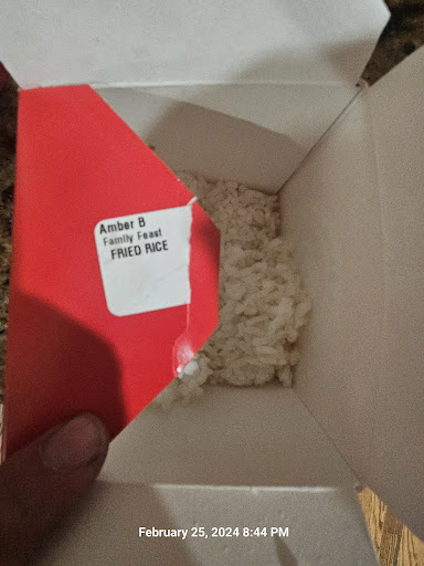 Read moreVery disappointed in our first experience at this newer location. Because I was in a rush, I chose carryout meals for three members of my family. While the teriyaki chicken and chow mein were old but passable, the almond chicken and fried rice were extremely old and should have been thrown out well before we arrived. The rice was visibly dried out and crunchy with some discoloration of the peas and carrots, and the almond chicken was hard and gummy. Worst food I have ever been served at a Panda Express. I felt strongly enough about my experience that I tried to call the business to speak with a manager. Unfortunately, no one answered the phone any of the several times I called. Instead, a voice recording informed me that they were unable to take my call and hung up each time. I understand that times are tough in the industry right now, but NONE of the other Panda Express restaurants (nor any other restaurant I have been to) in town have served up anything like this. This was an obvious attempt to pass off very stale food....