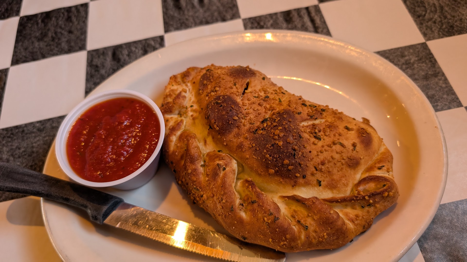 Parking can be limited in this area, as the restaurant shares with other businesses. We have never not found a space, by some miracle, but you may find yourself in the furthest spot from the entrance, due to the popularity - rather lunch or dinner. Walk through a glass door with metal handles to a host stand on the left, baseball gumball machine on the right and a bar straight ahead in which you would make it there in two steps. The front of the restaurant houses tables and booths alike. This is also the part of the restaurant the kitchen and restrooms are found. In "the back" are additional tables and booths, but here both are larger and you must be mindful to carefully step up and down from the booths. While black and white checkered tablecloths adorn the tabletops, old memorabilia such as gas cans, chicken statues, hockey photos dress the walls. The floor is carpeted with a low pile grayish carpet, which was dirty. Looking above ones own eye level, you will find wine bottle lights and TVs. The menus are made of a nice wipable martial, but the children's menus are printed on standard paper, with the selections on one side and coloring on the other; your standard four pack of crayons will be provided to each child, which are in a plastic sleeve. Your food is typically served on plastic white/cream colored plates, plastic bowls or white china dishes. This restaurant totes Pepsi products and usually has salt, pepper, parm and red pepper flakes on the table. While known for their paninos, this is an item I have yet to taste. Of the locations in Colorado Springs, this is the...