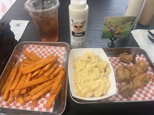 My boyfriend and I had been wanting to try Porkbutt BBQ for a while and finally had the opportunity yesterday. We pulled up at 11:52 and waited in the car since they don’t open till noon. They opened early at 11:55. The staff was 10/10. Knowledgeable, kind, and courteous. The food was INCREDIBLE. My boyfriend is a Rudy’s fan, but I’m not since they don’t have good sides in my opinion. But Porkbutt has amazing meat and sides. We got chicken nuggets, mac n cheese, sweet potato fries, iced tea, lemonade, and he got the brisket grenade. The cheese sauce on the mac n cheese and grenade was so unique, I asked a staff member what that unique flavor was that gave it just the tiniest kick, and she said hatch green chiles. It was really good. The nuggets aren’t frozen bagged nuggets, they are fresh cut chicken thighs breaded and fried to order. And everything in the restaurant is gluten free. They also have all sauces made from scratch, including the ranch which I dipped my nuggets and sweet potato fries in. And I’m an iced tea snob, and the tea was SO GOOD. The only thing that wasn’t perfect was the mac n cheese noodles were a little too soft for me, but still delicious. Even their business name and logo are adorable. Highly, highly recommend...