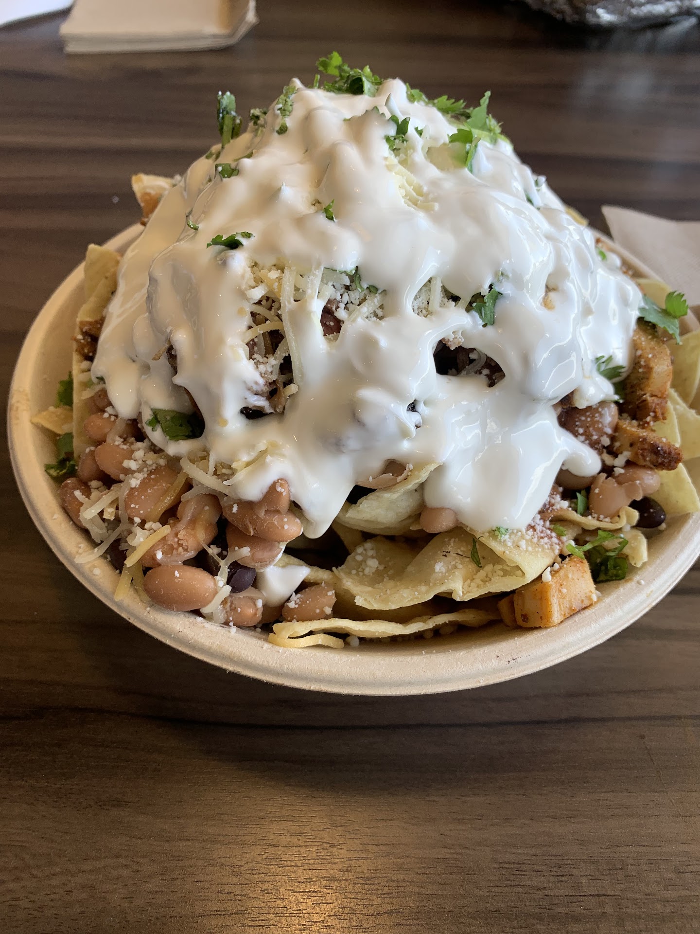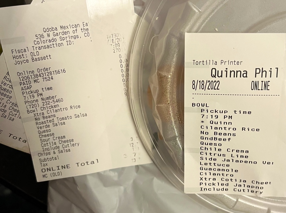 This visit I got a pork burrito for myself and a pork bowl for my wife. When I checked out I was surprised by a price that was the same as 3 entrees. I got half and half white rice/cauliflower mash, double corn, queso, and black beans in my burrito. In the bowl, I got cauliflower mash, double guacamole, corn, and queso. I was charged $1.50 each for the cauliflower mash and $2 each for double queso on both items.