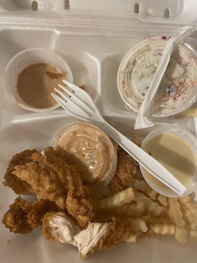Since moving to Colorado, Dad and I have been trying different eating establishments rather than returning to the same one all the time. Today we discovered Raising Cane‘s Chicken Fingers. We both ordered the popular four chicken finger meal. It comes with four chicken fingers, a fist full of fries, toast, coleslaw, and their special dipping sauce. Oh my goodness! First of all, the quality of the food was fantastic. I have never eaten chicken fingers that were juicy from the first bite to the last. Not until today, that is. The fries were crisp, hot, and not a single one was burned or soggy. (Some fast food restaurants just don’t serve a good fry.) The toast was scrumptious, and the coleslaw was almost as good as Mom’s. The dipping sauce was also quite tasty.