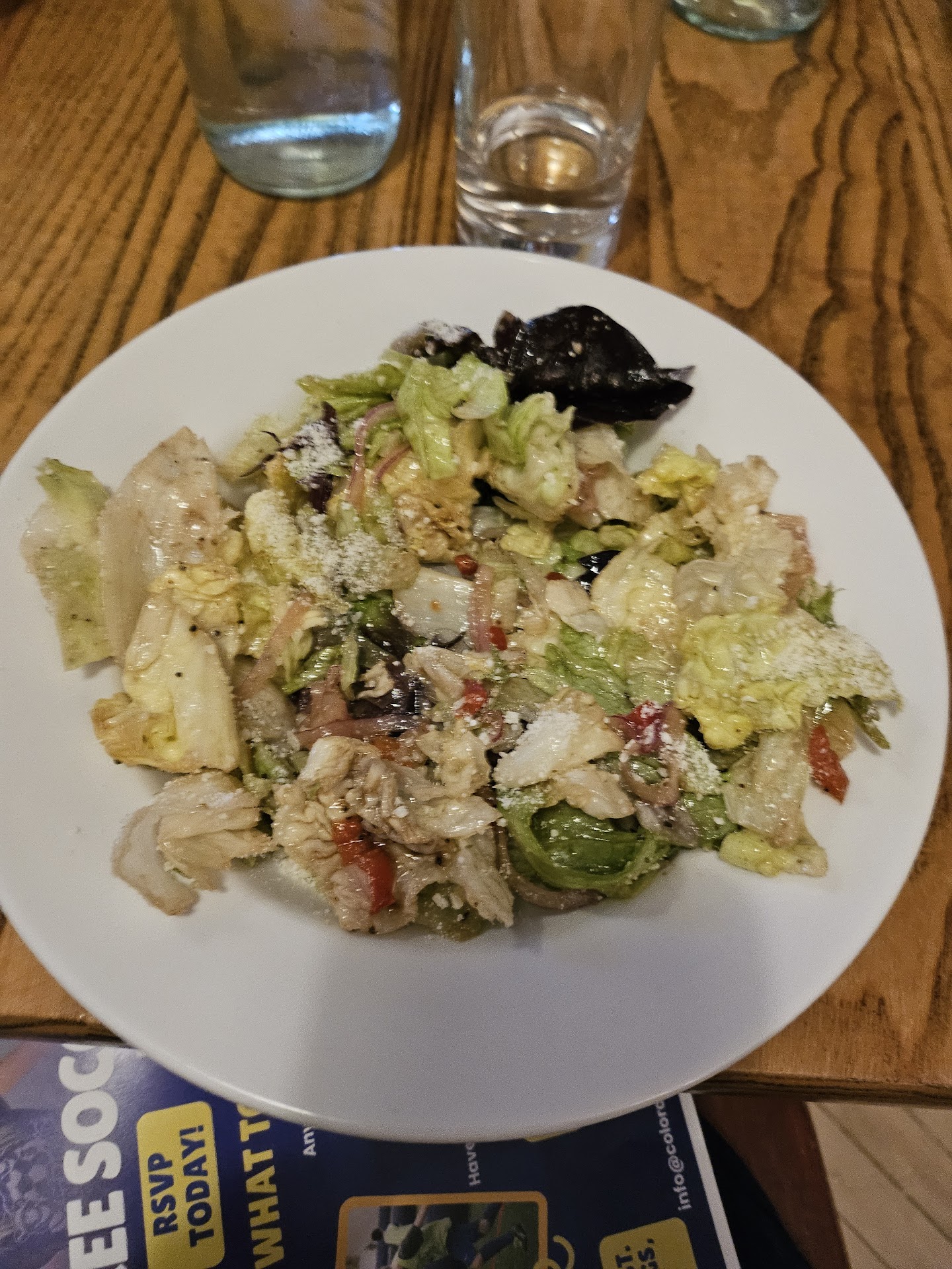 We walked in at 12:02pm. There was no line, 9 tables full, 3 of which already had food, 1 server and a bartender (Paige) who was also serving. After waiting 10 minutes, where two people came in stood in line and left as no one greeted them, we were greated at the door and were told that there would be a 15-20 minute wait by Paige as she said it was simply too busy for two servers. We were patient, hung out and waited while looking at the menu so we could be ready to order. 12:26- We got sat by Paige who declared we would be her table then went behind the bar, despite knowing we had and had looked at menus. Here, having been a server in a downtown location, knowing people with name tags on tend to be in a hurry is when I would have apologized for the wait and asked if we were ready to order. Paige doesn't say anything about the wait, puts down a drink menu, and walks away without waiting for us to sit. Another server returned with water. This server was amazing and very helpful. When she came up we politely told her we had to take off in 30 mintes and asked if we could order now. She was very understanding, took our orders and even offered to print our tickets immediately. She left with out orders and at 12: 32 (6 minutes later) Paige walked up with the worst tone and explained they were unable to rush the food (we didn't ask for that) that the pasta is cooked fresh and took 15/20 mins to cook and asked if we would like the order it. At this point it's past 12:30 downtown lunch and we don't have time to wait in line anywhere else to get sat or even get through the Chipotle line so we decided to stay and that we would eat for 5 mins, pack up the rest and head out. When we said we would stay she rolled her eyes and stomped away saying it would take a while. I said to my co workers that it probably would have been faster if she put the order in immediately instead of waiting over 5 mins to even talk to us. She stomped back, very angry, and told me there was a Chipolte next door and to feel free to go there. I said no thank you and she rolled her eyes and walked away. The nice server brought a drink for the table 10 minutes later, again kind. We asked her if we could get the checks printed and she kindly said yes. Paige walks up, rolls her eyes again, and slams salad bowls on the table. She placed a very nasty salad in front of me (very different from the rest) but I didn't say anything about it, photo attached. When someone else asked for break we got a bit more attitude, paige dropped off the checks, more eye rolling. It continued like this until 1:01 when she offered to box our food which we said thank you to, though of course she didnt put or offer to put silverware in. I waited again 3 more minutes to ask for silverware and received more eye rolls, flipping hair (not tied back of course) and the silverware.. From the moment we walked in (12: 02pm) to when we got our food (1:04pm) we were treated with a serious amount of disrespect and attitude. Mind you the ENTIRE time we were in there, there were never more than 11 tables including us. Seems like Paige can't handle the stress of serving and bar tending and the restaurant is under staffed. I really will not be back for a bit, not with Paravicini's 10 minutes away and Paninos down the street. I genuinely recommend if you are going to spend money on good Italian food go to one of...