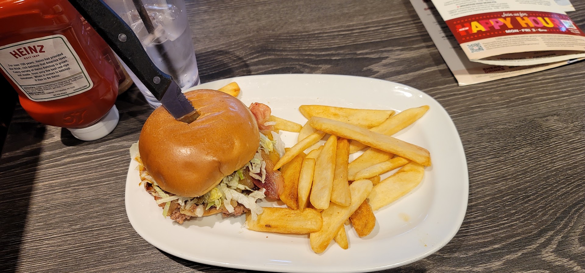 Read moreI was very disappointed with this place. This was the first and last, unfortunately. I was surprised at my experience seeing that it currently has a 4 star rating. We arrived and were sat shortly after. Our waiter was Andy and he was very friendly, but everything else was lacking. We ordered our drinks and it took a while for them to finally arrive. We were ready to begin our order with apps and a kids meal. Andy, in the meantime, was literally sitting with another party next to us. While I don't fault him for making them comfortable, I was not too happy with the lack of attentiveness to not only our table, but others as well. We attempted to do the kiosk, but it wasn't working. As he was making his way to the kitchen, we advised we were ready to order. We asked for pretzel bites, wings with ranch, and a spinach dip as well as a kids menu. Our drinks were mostly empty at that point, but wasn't replenished. It took our apps over 20 minutes for them to come and when it did arrive, no spinach dip and no ranch dip for the wings. The cheese sauce was cold for the pretzel bites and the wings weren't great. When we asked Andy for our ranch and refills, he seemed a bit annoyed. Mind you, he's been spending most of his time with that one party. Finally, we ordered our food. My burger was okay. I didn't order an A1 burger, but funny, that's all I could taste. My sister, however, ordered the A1 and there was no flavor. I asked for garlic herb fries and received regular fries. We looked at our tab and noticed that all the items missing weren't even punched in. We didn't finish our food or take it with us. Overall, the service sucked and the food sucked. I feel like I would've gotten better service and food at a Chucky Cheese or a McDonald's. Now, when it comes to tipping, I believe I'm a fair to great tipper. If I get awesome service, you're gonna get 20% or more. I have only given a 5% tip or less twice in my life. This was the second time and I feel like the three dollars we left was...