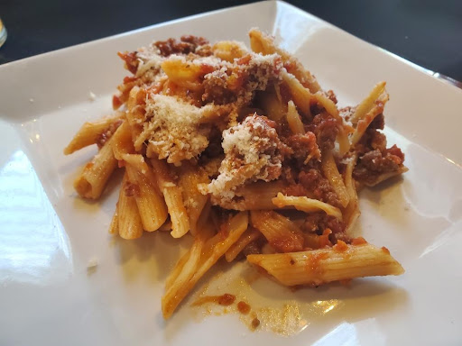First a salad was served that didn't have a lot of flavor. Then penne bolognese and some sort of fettuccine covered in cheese. I was so disappointed when I tasted the bolognese. The penne pasta was mushy, falling apart and red sauce was tasteless and watery.