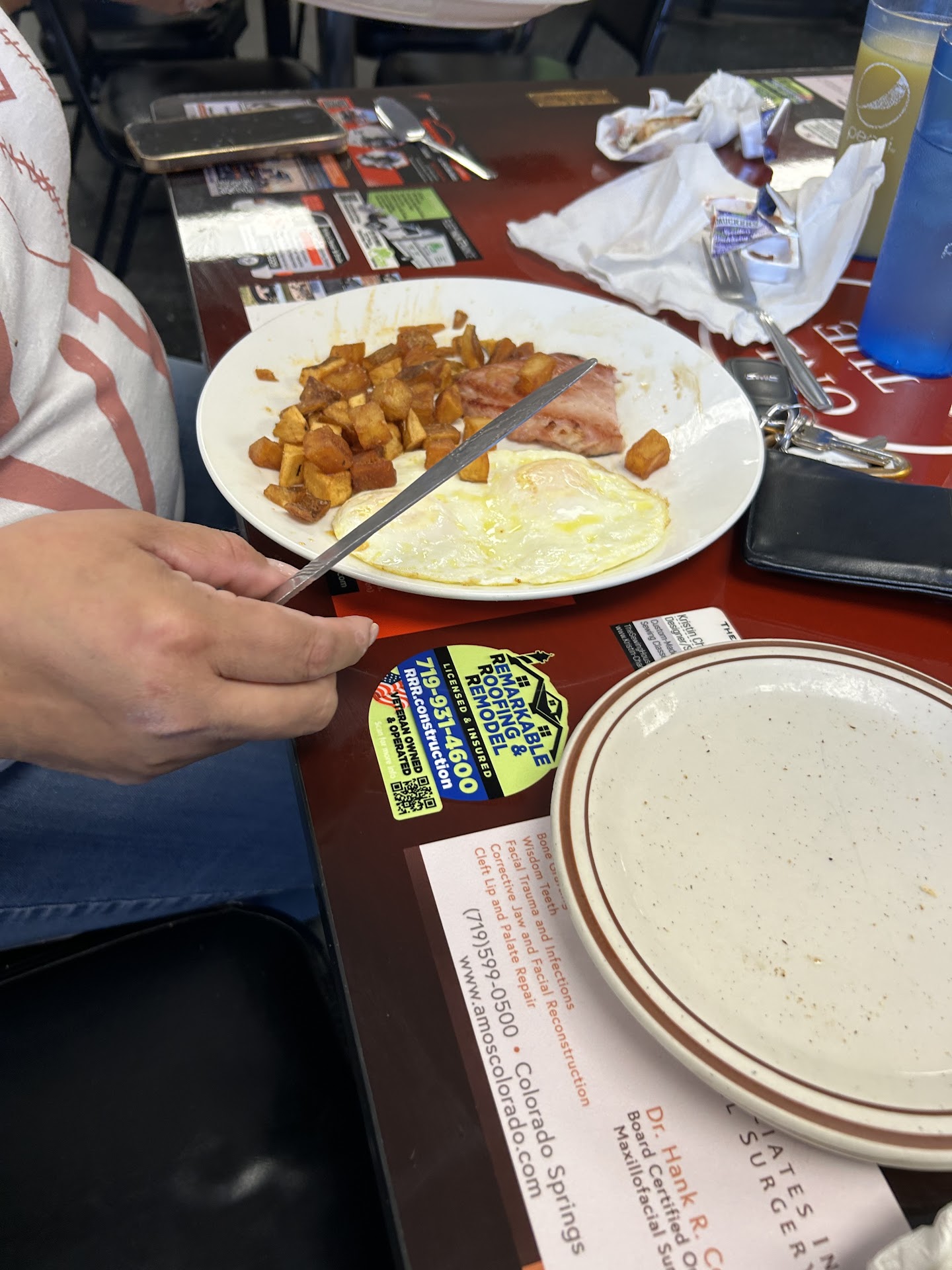 Read moreI just picked up an order. I ordered chicken fried chicken, scrambled eggs with American cheese, crispy hash browns, and sour dough toast. I have eaten at Sheldon's on 8th St. many times over the years. I have never had a bad meal, until today. There was no potatoes in the hash browns. It was just these little brown, crunchy, greasy sticks. The "toast" was soggy bread slathered in more "butter" (grease). The rest of my order was average at best. Also, while I was waiting on my order I noticed the sign listing their pies. I was always under the impression that Sheldon's made their pies. So I ordered a slice of my favorite. Lemon meringue. It came out as a sliver of pie. And it was a frozen store bought pie at that. When I mentioned to the cashier about how small the portion was her response was snide. She said that was how they cut all of their pies. I was very disappointed in the food and the...