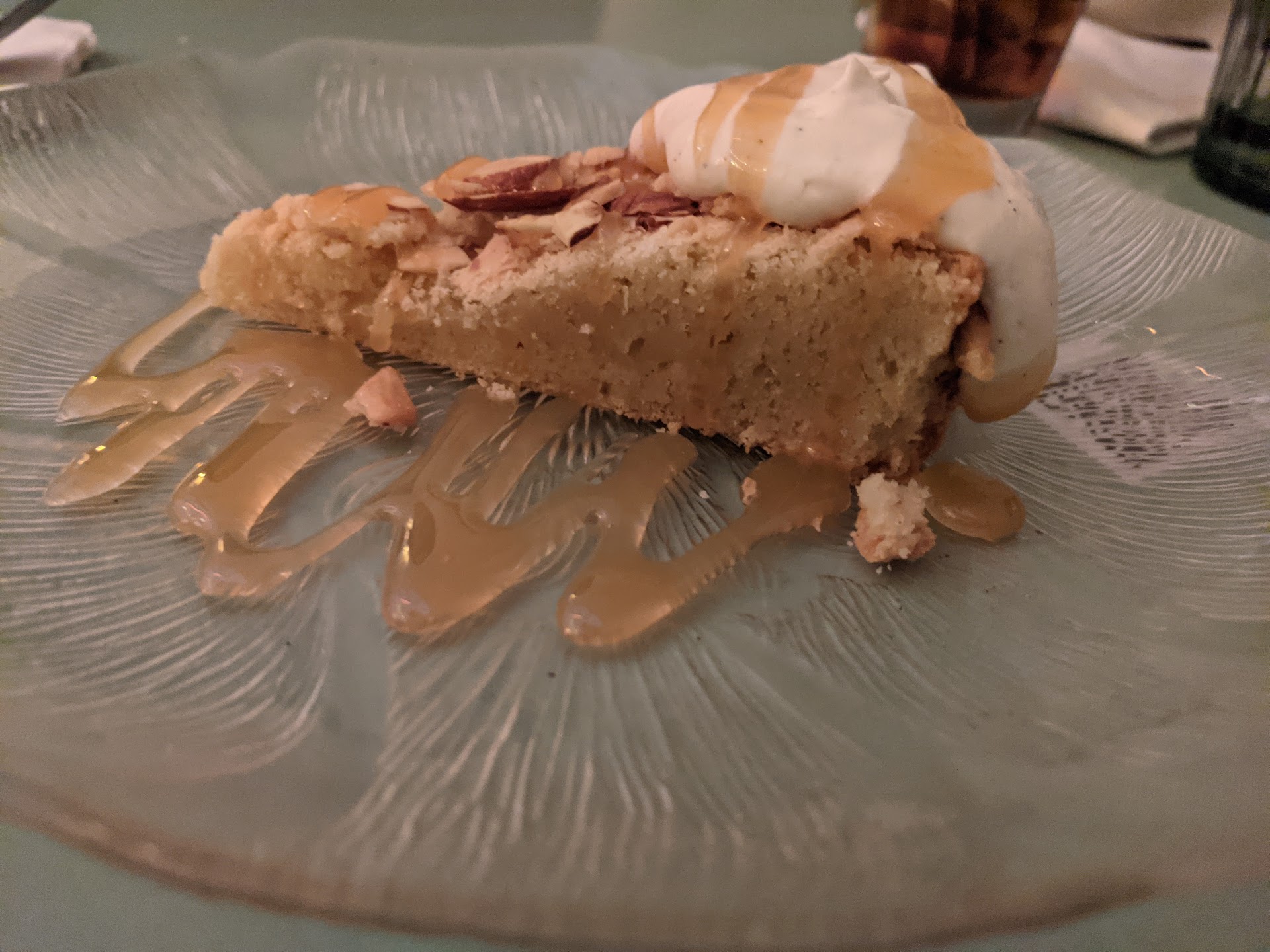 And, of course, you gotta save room for the almond cake. This ain’t your average dessert—it’s got that strong almond flavor that lingers just right, topped with a dollop of homemade whipped cream that’s light as a feather. It’s like your grandma’s secret recipe but with a little more flair.