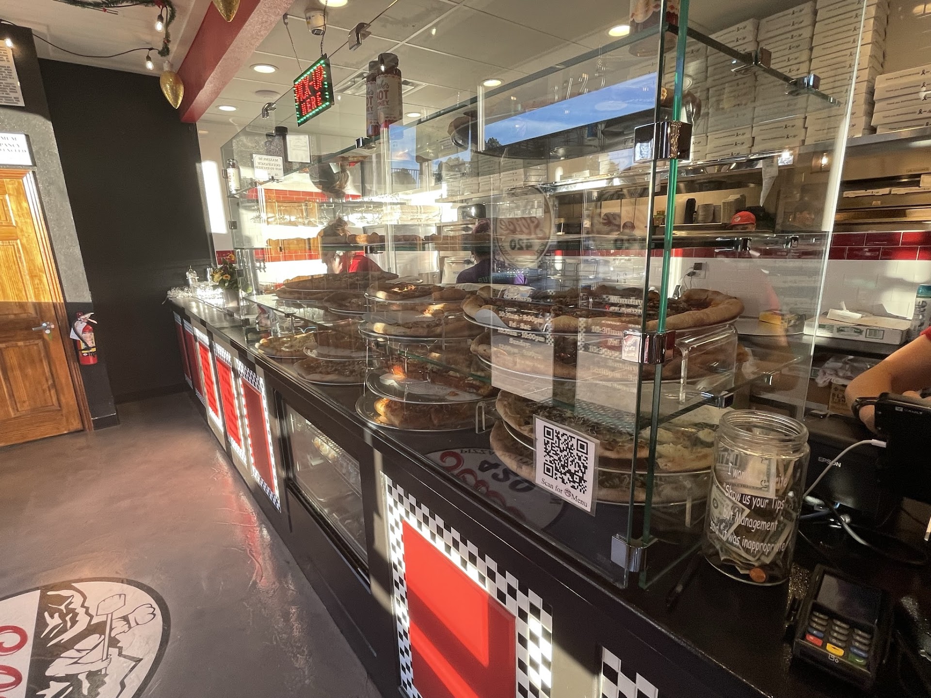 I noticed their parking lot was quite full & the place seemed to be hopping. There were several tables full of people & only a few in line. Their system appeared to be having an issue, but the staff was moving through orders & keeping a positive momentum. Once I was up, I ordered 2 pepperoni slices & 2 white pie slices. The case was full of many tasty looking options. The total was around $20 for 4 slices, the white pizza was slightly more than a typical pepperoni slice.