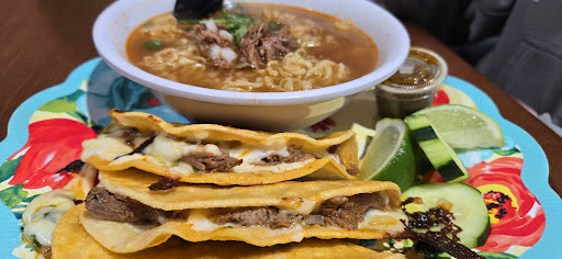 Authentic Mexican cuisine, specializing in birria and offering with unique choices such as birria with ramen and pizza. Google Maps links the menu to a website that is on a parked domain, and there is no way to remove it because there is not a replacement address. The Door Dash menu does not match the in-person menu, and the in-person menu is also confusing because it does not mention the birria ramen and quesabirria each come with three barria tacos, so I almost ordered extra tacos. Furthermore, the menu did not mention the extra charges for the cheese on the birria burrito and the asada meat on the tactos.