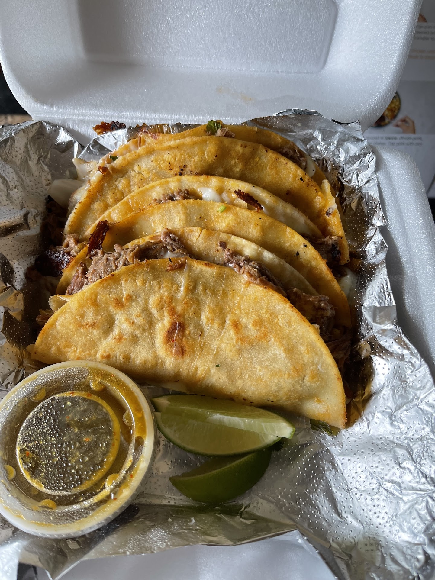 Read moreI had heard really good things about this place so I decided to check it out. When we went in it took about 15 minutes to place an order, I saw the lady cooking was by herself so I completely understood why it took a while, no big deal. It was around lunch time so it was quickly getting packed so we sat down to sit and wait for our food. About 15 minutes in, we noticed that there had been several people that were getting food that had ordered way after us but the people that ordered before us and ourselves didn't receive any food. It wasn't until about 30 minutes later after that, where we received food but it wasn't even the correct order. A family member I went with had asked the cook about the food orders being wrong and others receiving their food minutes after ordering and she told her she was not doing any more orders. You could tell she was overwhelmed and I felt bad but it's unfortunate because this was my first time and it wasn't a good experience. We waited almost an hour and didn't get our food. The birria taco I managed to eat was really good and super flavorful but I didn't get to receive even half of...