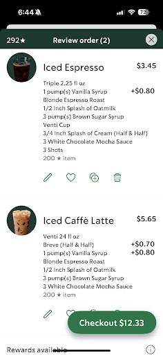 I’ve attached a screenshot of what I normally get and what they charged me for(It says they charged For half-and-half on the latte, but there’s no half-and-half in my drink it...