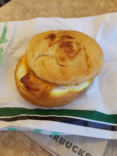 Read moreThis location is mediocre at best. First, you're just another customer at this location. There have been a couple occassions where the drive-through cashier was very friendly. Sadly, that is a rarity - don't get me wrong, they aren't usually rude they just treat you like another customer - another car rolling on through, another debit card to run. Second, today I ordered the gouda sandwich (smoked bacon, gouda and egg sandwich) and received a double-smoked bacon, cheddar and egg sandwich. By viewing the picture you can see how amazingly delicious it looked when I removed it from the paper bag. This is the second day this week that I ordered a sandwich and it looked like this. Quality is lacking for sure at this location. As for the eggnog latte I ordered this morning, I cannot begin to describe the taste but I assure you it was unpleasant. I've ordered plenty of eggnog lattes in my lifetime to know how they should taste.