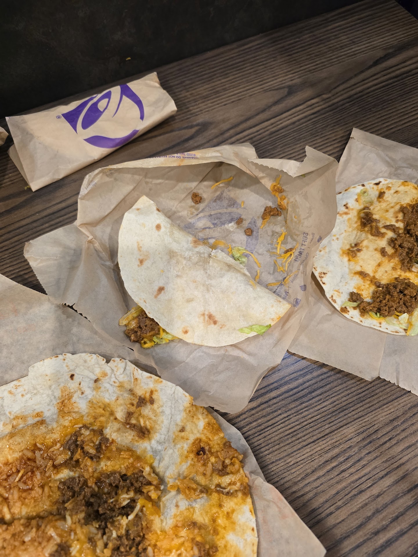 Read moreWorst location in the entire US I've been to alaska north Carolina Illinois Idaho Virginia Tennessee locations and many more and have never had the service or nasty handling of the food I asked to speak with someone they ignored me so I asked another and had her come over to see what unsatisfactory crap they are dishing out and I was argued with saying she made the borritos when I saw someone else making them and that person even said they were working on my order but the portions were way off one had all rice one had very little of anything and she just argued to the end that they are right even when I pointed out the fact all 3 were different amounts and very obvious that they were and the soft tacos were thrown in the wrapper and almost no beef in 1 soaking with grease, nasty food nasty staff and if that huge chick was the manager she must have been mad she had to walk 10 feet or something this place is ridiculous. I know taco bell ain't no gourmet meal but damn do better, how bout don't throw everything together and throw everything in a bag then tape it up tight so you can't see what mess they made SMH do better also in the app it said that my order would be ready by 9:10 it's understandable to be a few minutes over that but I left at 9:40 you can see on the camera that's sit down restaurant time like wth this is taco bell should be out fast and in good condition with accuracy not slow as all get out and the most sloppy job...