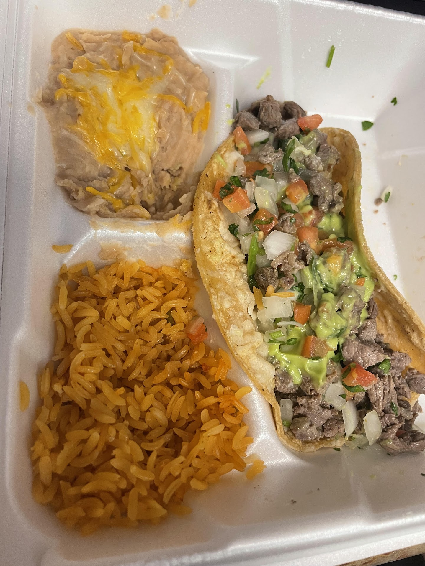 Read moreThe food is decent. They package their food weird when you go through the drive thru, most of the time they pile everything into one big container so itâs hard to eat with multiple people. Youâll have 4-6 tacos in one container and we often have to just pass it around and take turns or wait until we get home. Theyâre VERY stingy with any âextras.â Itâs a fight to get their diner napkins that are pretty useless, silverware or hot sauce (they now charge you for hot sauce after their rationed 1 per 2 item rule.) We each order 1 taco so we have to share 3 napkins, 1 container and a hot sauce per two people. Complaining is pointless because they call you names in Spanish and cop an attitude. The food is good but the experience is ridiculous. We have begun to frequent Fuzzyâs tacos more and more just because itâs easier a less...