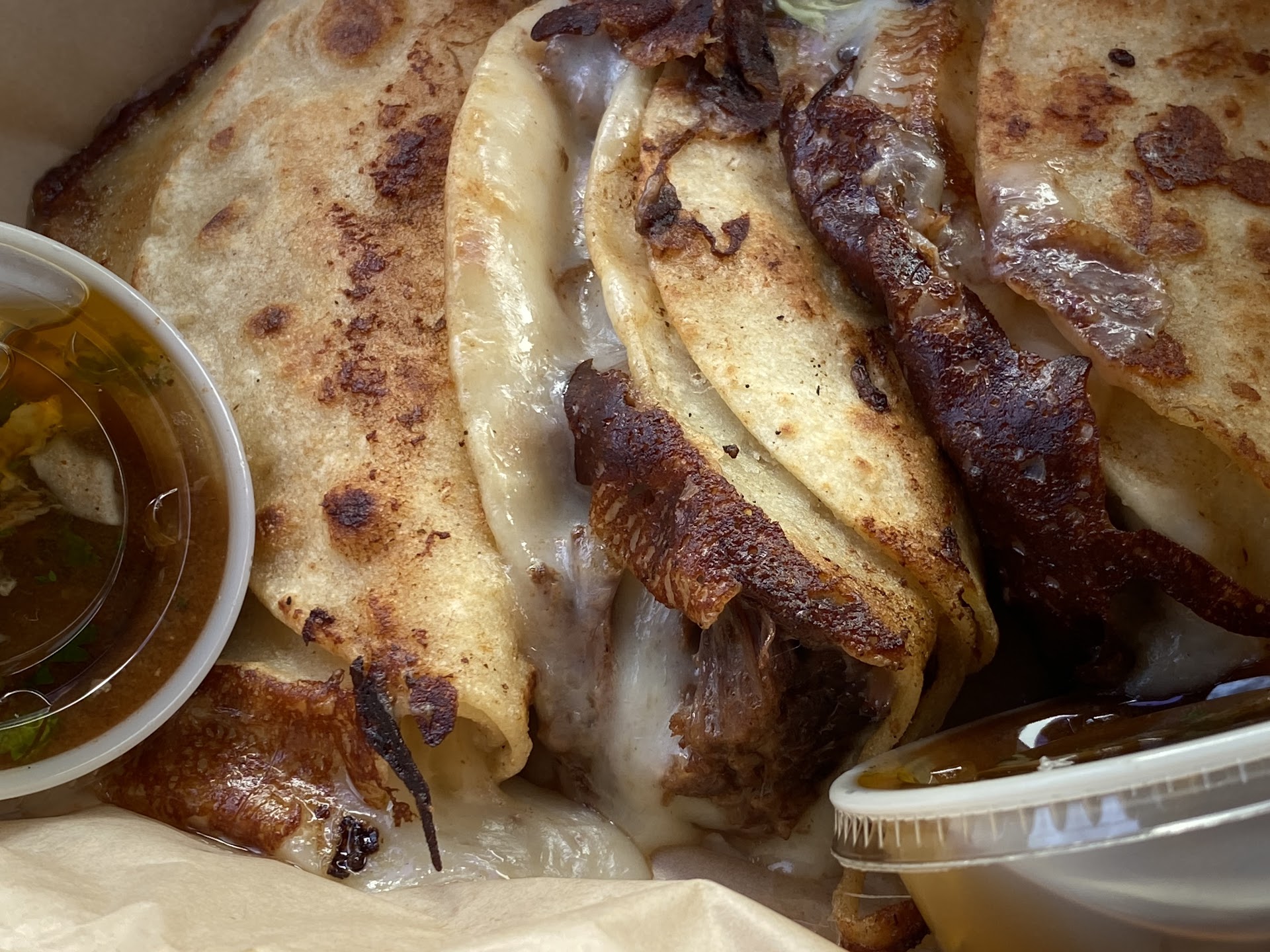 If you don't know quesabirria is slow cooked stew meat and broth and mixed up with cheese when serving on a hard shell usually fried tortilla then served with onion and cilantro. It's fire and these guys do it well.