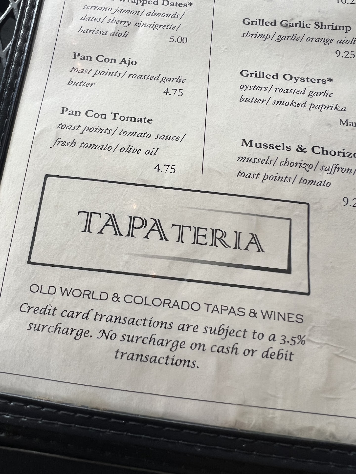 Our favorites: Gambas y Semolina (basically Shrimp & Grits, but from someone that doesn't usually like that, this was the best!) Charcuterie & Cheese (especially the bleu cheese) Garlic Mushrooms